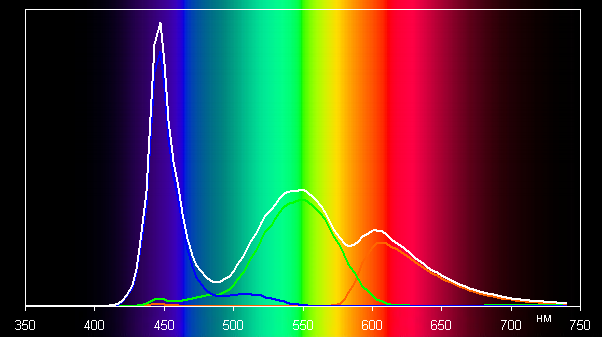 Спектры показывают, что светофильтры матрицы в умеренной степени подмешивают компоненты друг к другу: