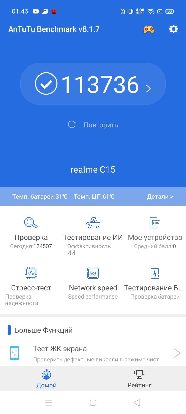 | AnTuTu (v8.x) (больше — лучше) | 113736 | 88797 | 82618 | 182704 | 156290 |