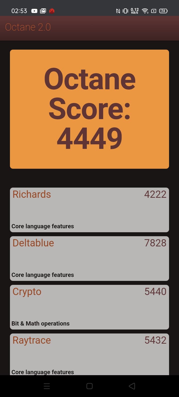 | Google Octane 2 (больше — лучше) | 4449 | 3918 | 4204 | 10381 | 8831 |
