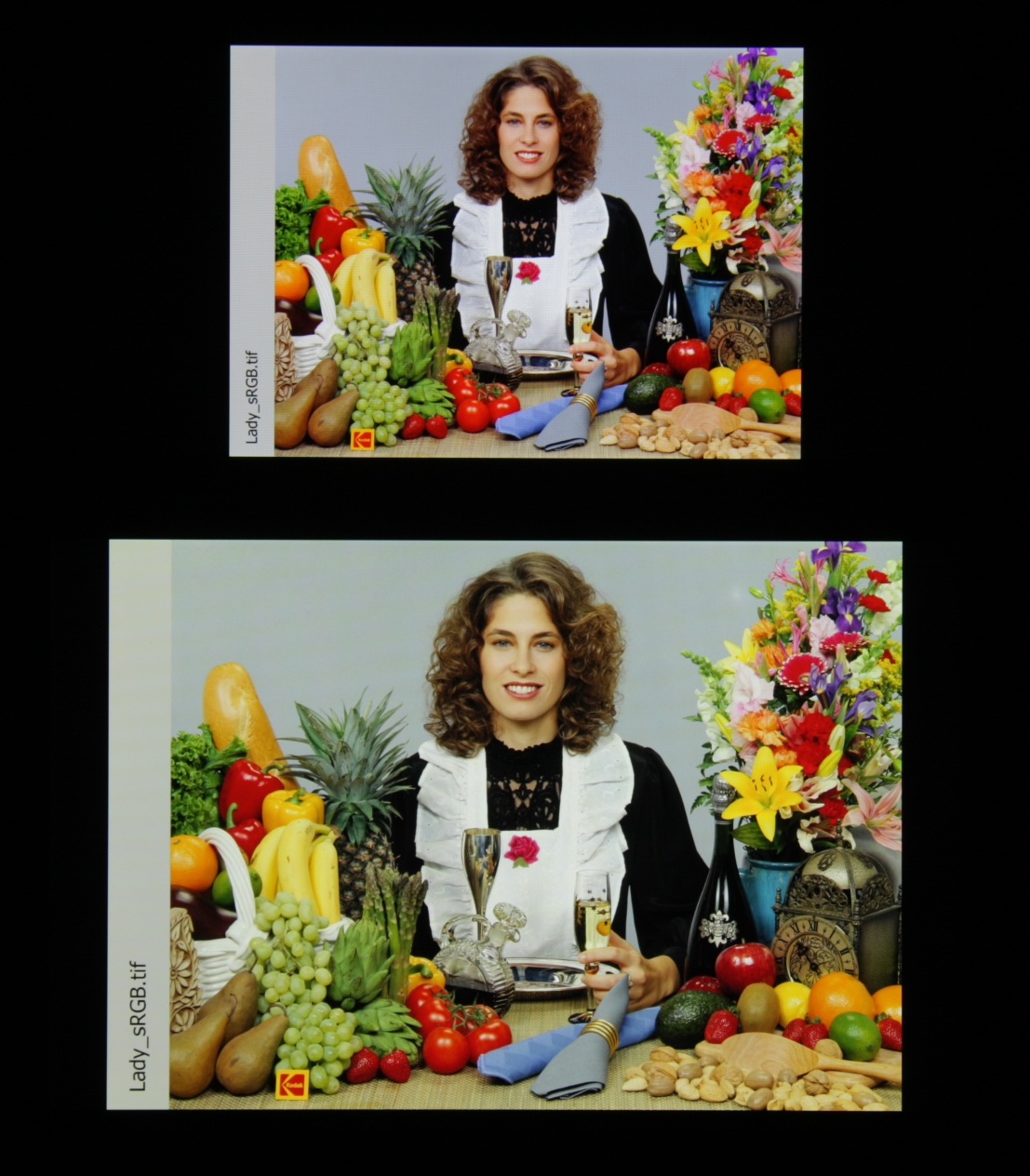 Отметим хорошую равномерность яркости и цветового тона белого поля.