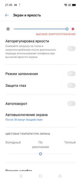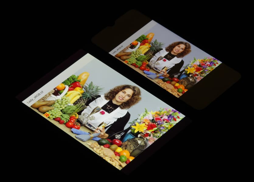 Видно, что цвета не сильно изменились у обоих экранов, но у Realme C21 контраст уменьшился в большей степени из-за сильного высветления черного и большего снижения яркости.