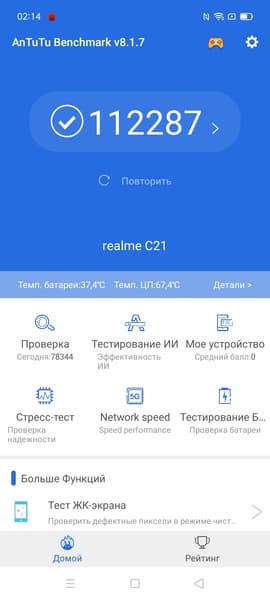 Тестирование в комплексных тестах AnTuTu и GeekBench: