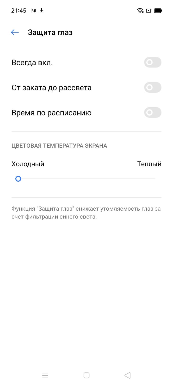 Также присутствует настройка (Защита глаз), позволяющая снизить интенсивность синей компоненты.