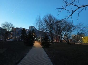 Главная камера получила 13-мегапиксельный модуль с характеристиками: 1/3,06″, 1,12 мкм, f/2,2, 26 мм. Есть вполне адекватный фазовый автофокус PDAF. Стабилизатора, конечно же, нет. Камера снимает на своем бюджетном уровне. Картинка проходит мощную постобработку, вследствие чего становится более яркой и контрастной, но теряет в деталях. Массивы зелени сливаются в кашу, мелкие объекты, такие как ветки деревьев, тоже теряют свои контуры. Однако на экране самого смартфона такая контрастная фотография, сделанная в автоматическом режиме съемки, смотрится выигрышнее, это главное.