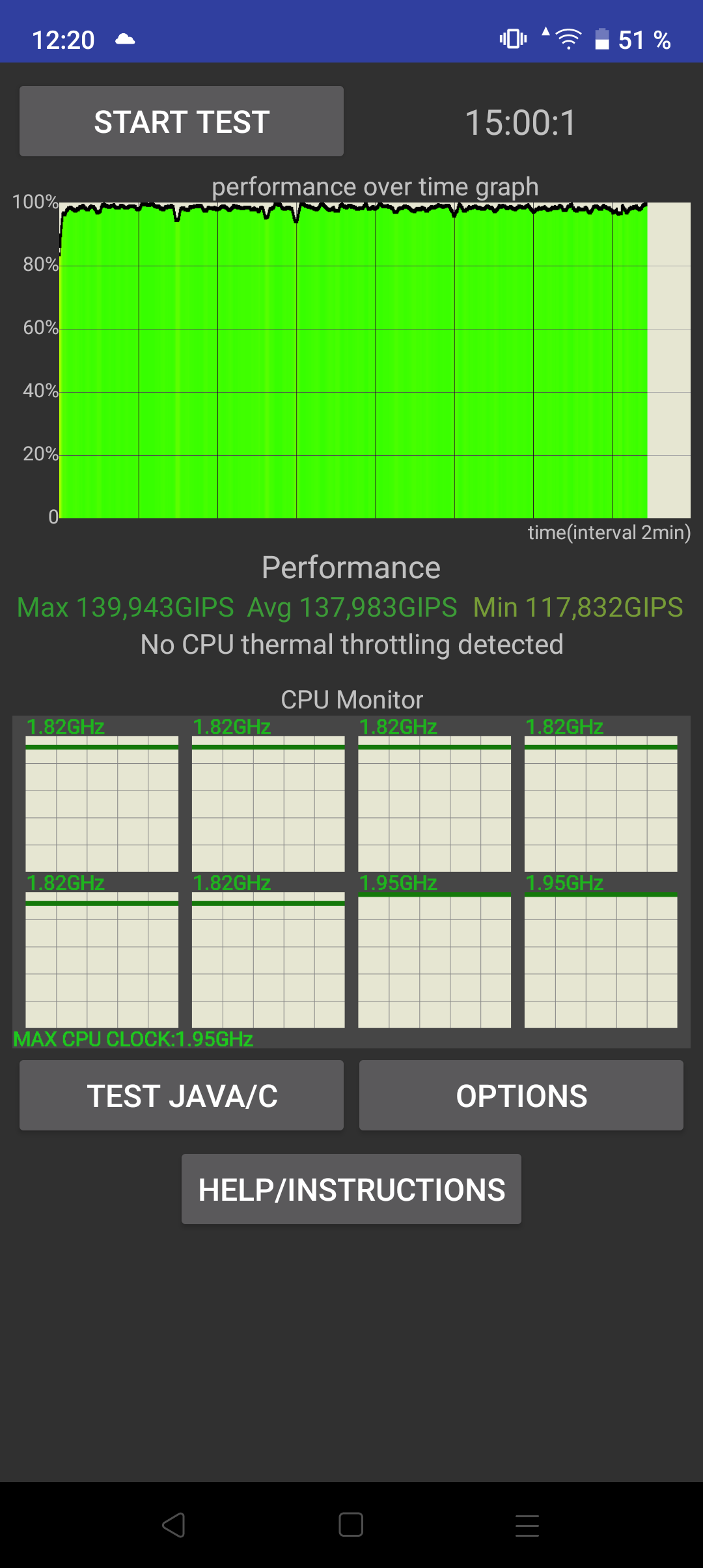Тестирование традиционно проводилось на обычном уровне энергопотребления без использования функций энергосбережения, хотя таковые в аппарате имеются. Условия тестирования: выставлен минимальный комфортный уровень яркости (примерно 100 кд/м²). Тесты: беспрерывное чтение в программе Moon+ Reader (со стандартной, светлой темой); беспрерывный просмотр видео в HD-качестве (720р) через домашнюю сеть Wi-Fi; игра Injustice 2 с автонастройками графики.