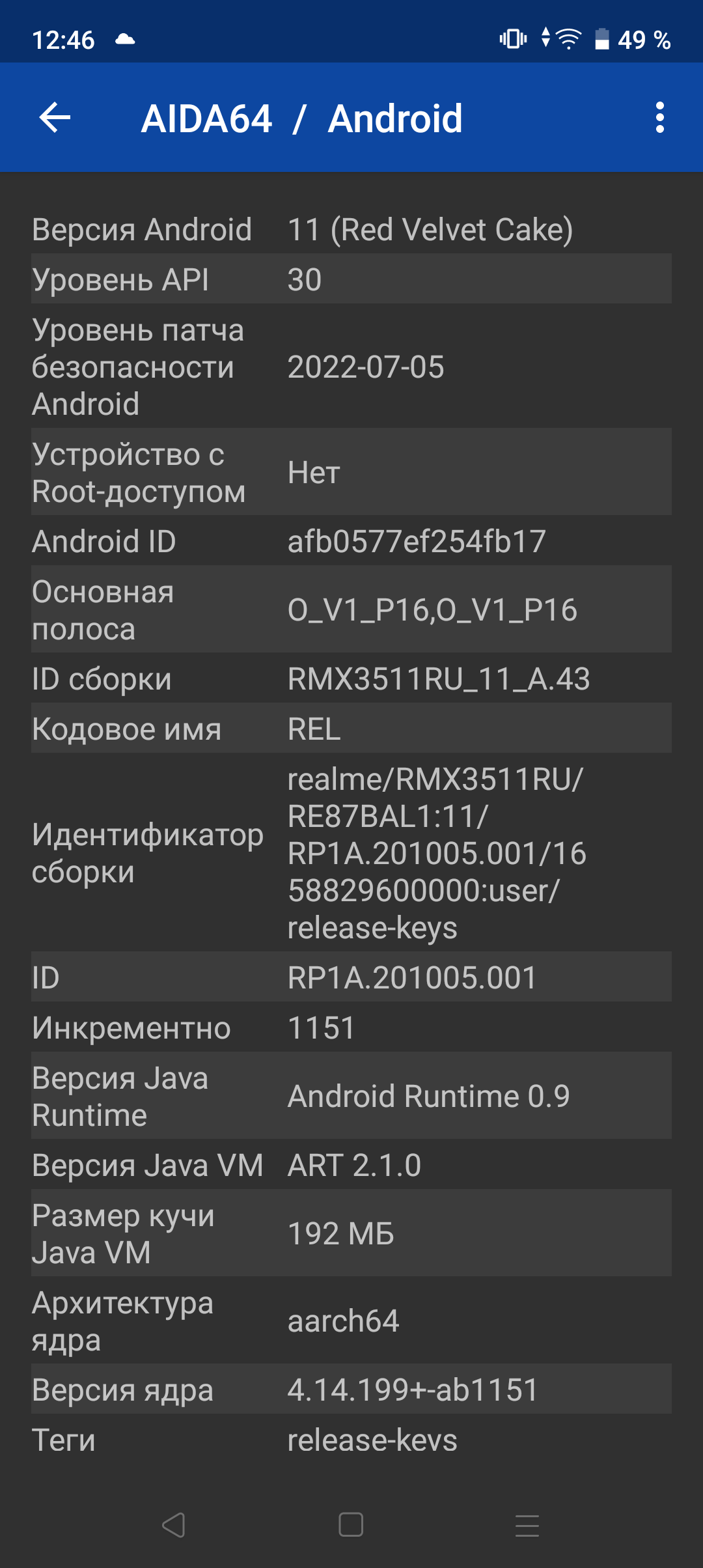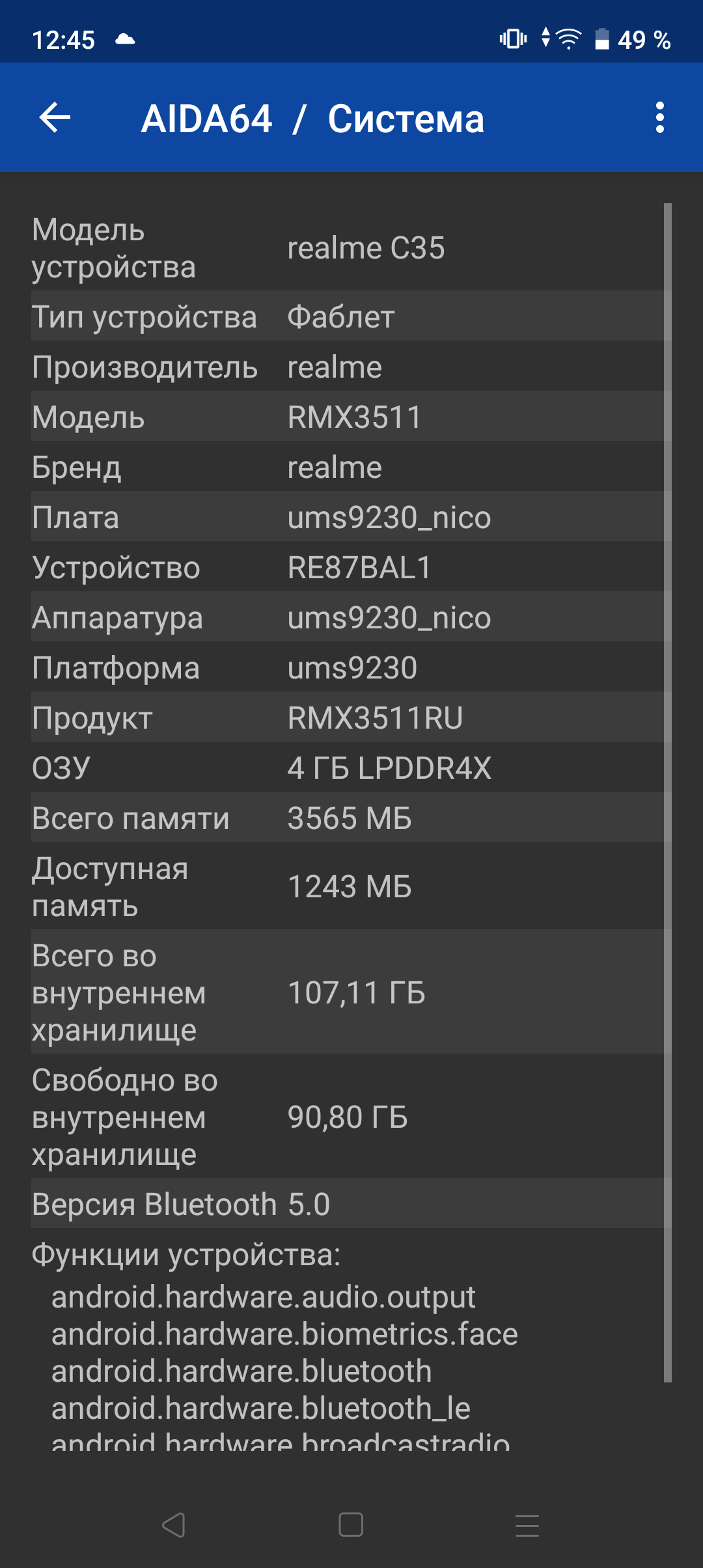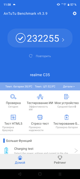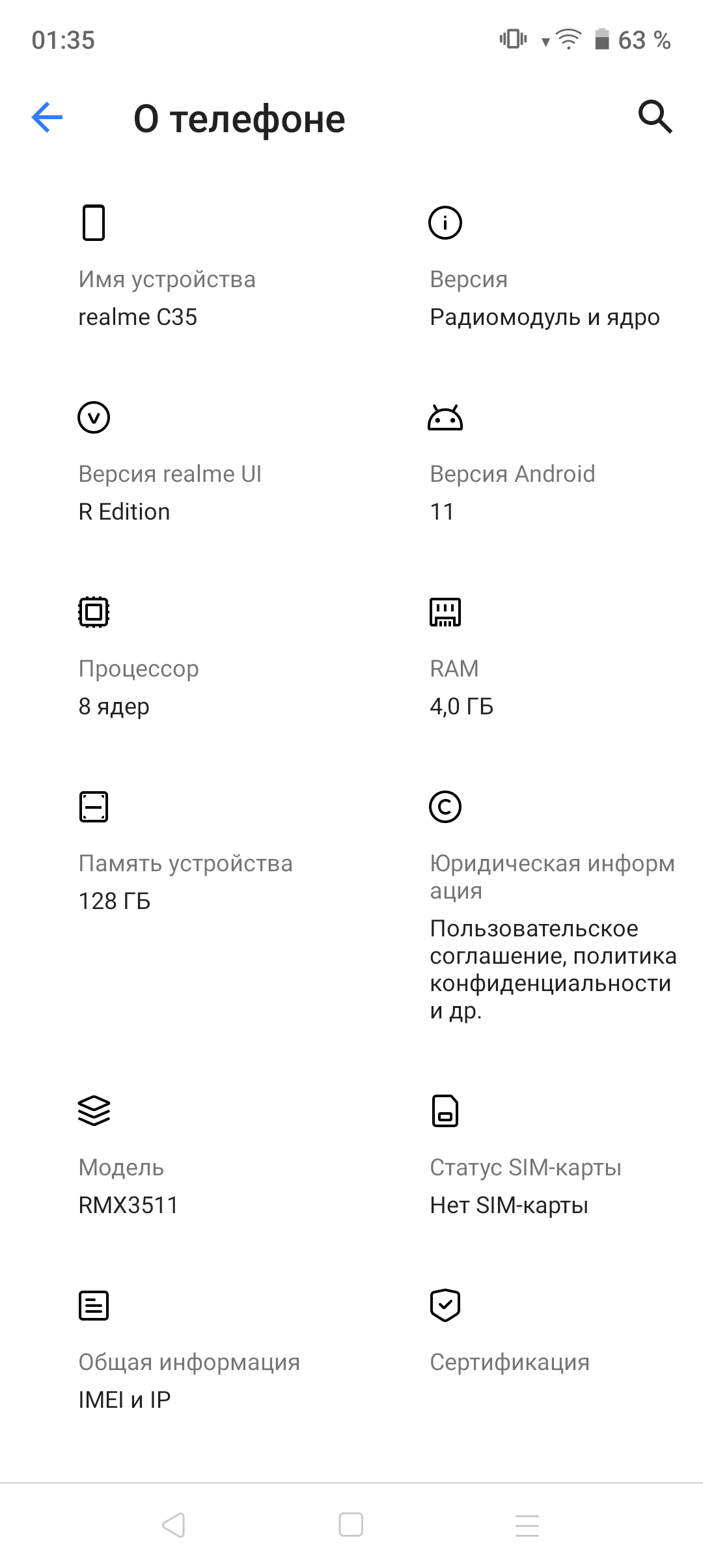 В качестве программной платформы Realme C35 использует ОС Android не самой уже свежей версии (11) с собственной оболочкой Realme UI 2.0 (версия тоже не последняя, более дорогие смартфоны компании уже обновились на Realme UI 3.0).