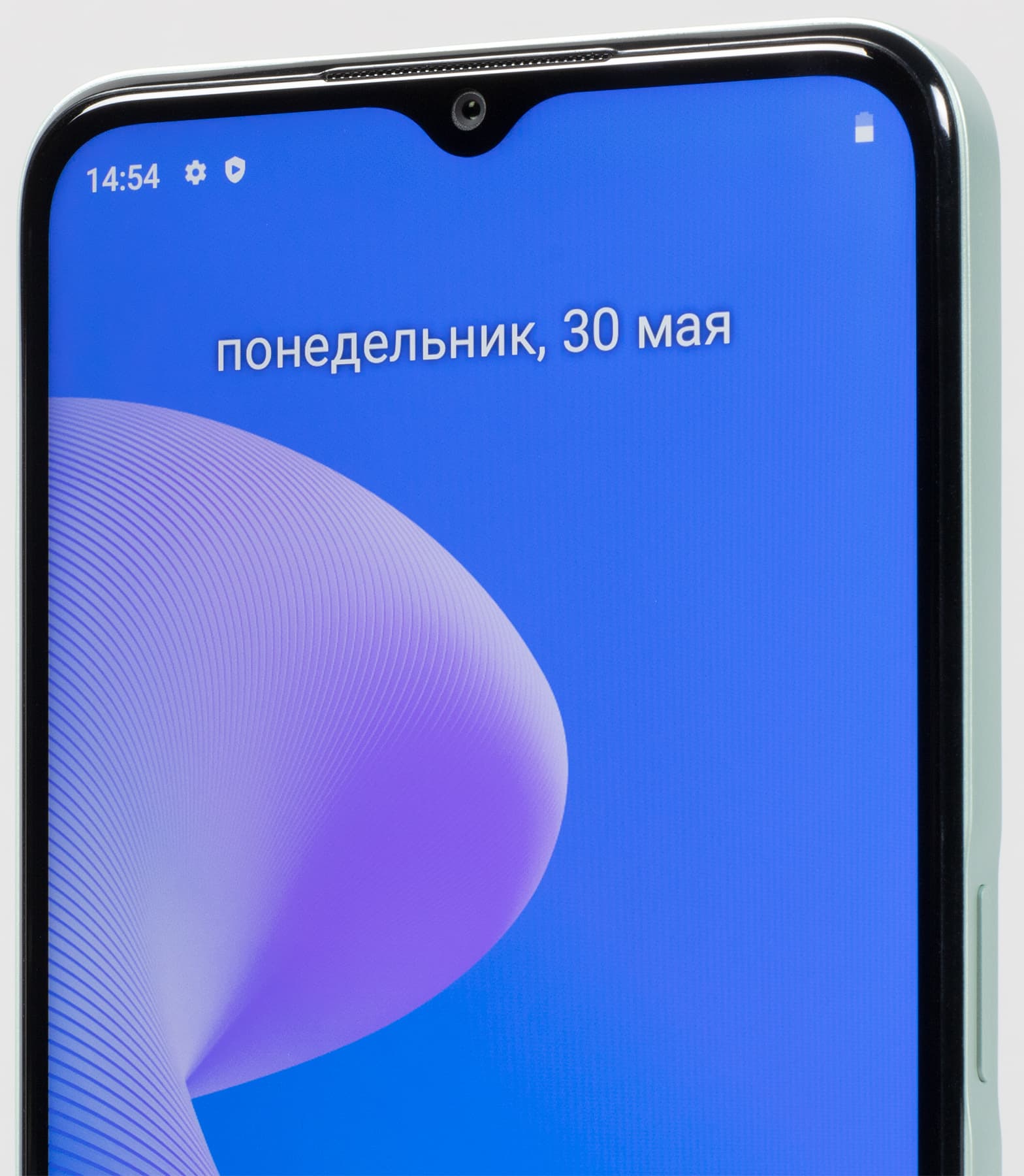 Фронтальная камера установлена в старомодном, но не очень крупном каплевидном вырезе по центру экрана. К сожалению, светодиодный индикатор событий у смартфона отсутствует.