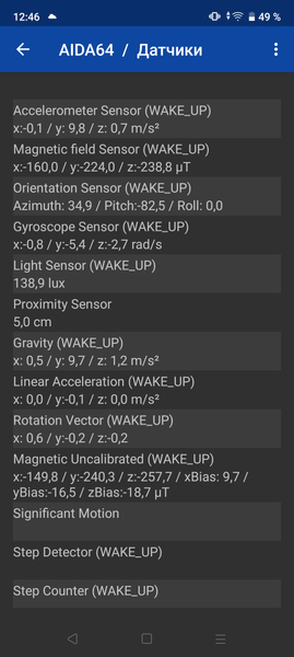 Навигационный модуль работает с GPS (с A-GPS), Глонасс, Galileo и BDS. Первые спутники при холодном старте обнаруживаются быстро, точность позиционирования не вызывает претензий. Радует полный набор всевозможных встроенных датчиков: здесь и геомагнитный, и акселерометр, и даже гироскоп, столь редкий для бюджетных смартфонов.