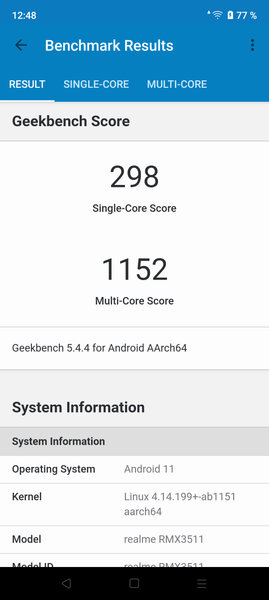 Смартфон получил простенькую SoC, анонсированную 1 января 2021 г. и производимую по 12-нанометровому техпроцессу. Это, безусловно, недорогая и не мощная платформа, которую даже к среднеуровневым отнести нельзя. Особенно это касается слабого графического ядра: ее графический ускоритель хоть и поддерживает API Vulkan, но выдает совсем низкие результаты в игровых бенчмарках. В комплексном тесте AnTuTu и браузерных тестах, однако, Unisoc Tiger T616 набрала даже больше баллов, чем злополучная Mediatek Helio G85, которая сейчас заполонила бюджетный сегмент мобильного рынка. Заметных притормаживаний в работе интерфейса и приложений не наблюдается. Даже в игры можно поиграть, хотя и на низких настройках графики. Зато процессор вообще не тротлится.
