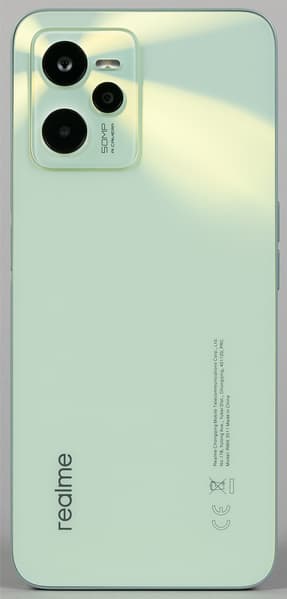 Realme C35 выглядит настолько привлекательно и стильно, что очень трудно с первого взгляда определить ценовую категорию, к которой он относится. Корпус выполнен в современном дизайне с ровными поверхностями и отчетливыми переходами между гранями, явно вдохновленным современными iPhone. Абсолютно плоские панели и широкая боковая рамка, а также своеобразное оформление задних камер — явные к тому отсылки. Издалека смартфон Realme можно даже спутать с продукцией Apple.