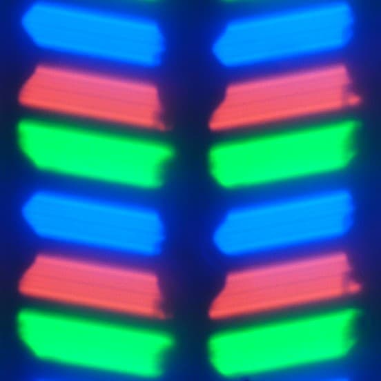 В данном смартфоне используется матрица типа IPS. Микрофотографии демонстрируют типичную для IPS структуру субпикселей: