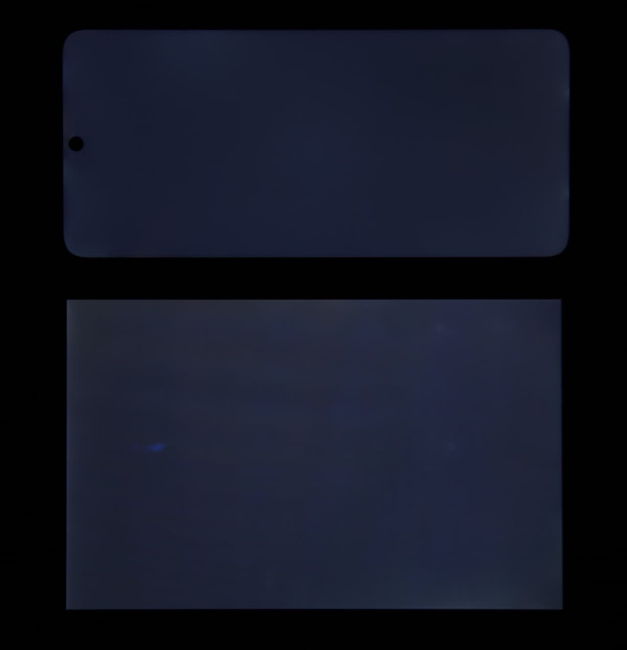 При перпендикулярном взгляде равномерность черного поля средняя — местами по краям есть засветы: