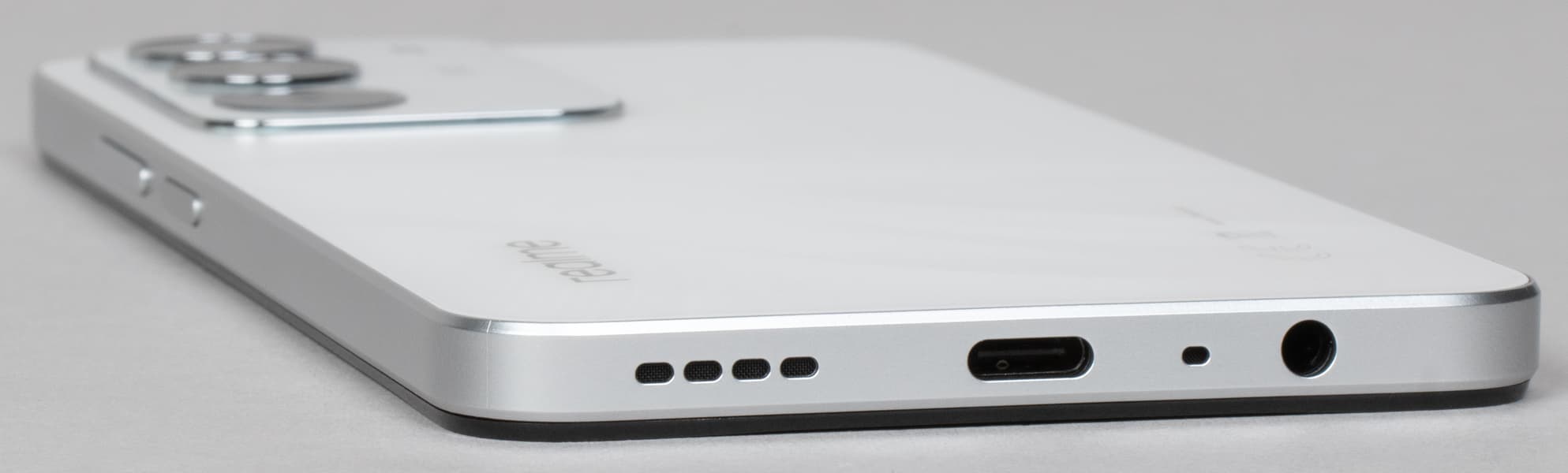 Верхний торец совершенно пустой. На нижнем торце собраны динамик, микрофон и разъем USB Type-C, а также 3,5-миллиметровый аудиовыход. Стереодинамиков у смартфона нет, единственный динамик в нижнем торце выдает простенький звук средней громкости.