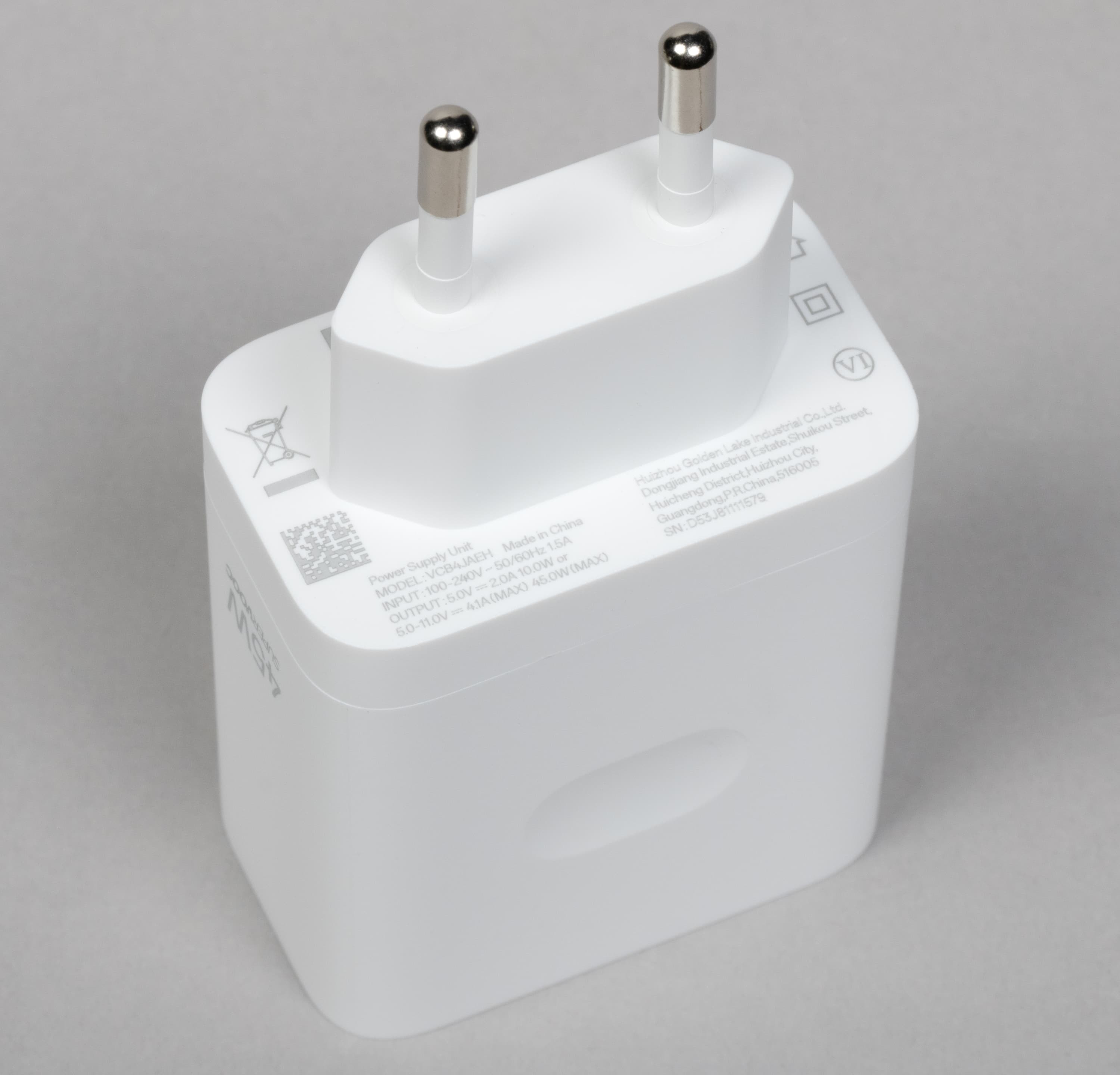 От комплектного сетевого зарядного устройства мощностью 45 Вт смартфон полностью заряжается за 1 час 40 минут. Беспроводная зарядка не поддерживается.