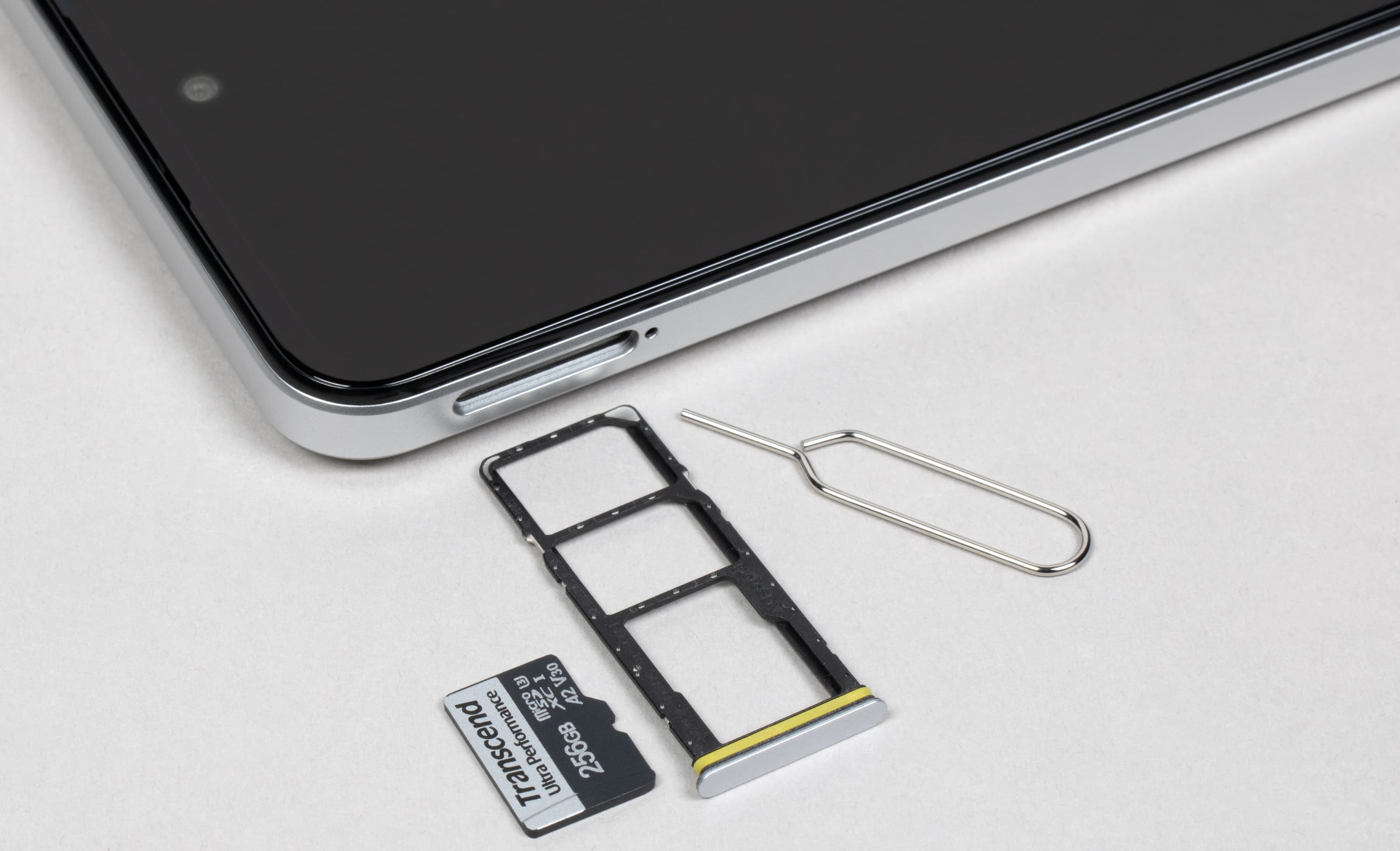 В тройной выдвижной лоток можно установить две карты Nano-SIM и одновременно карту памяти microSD.