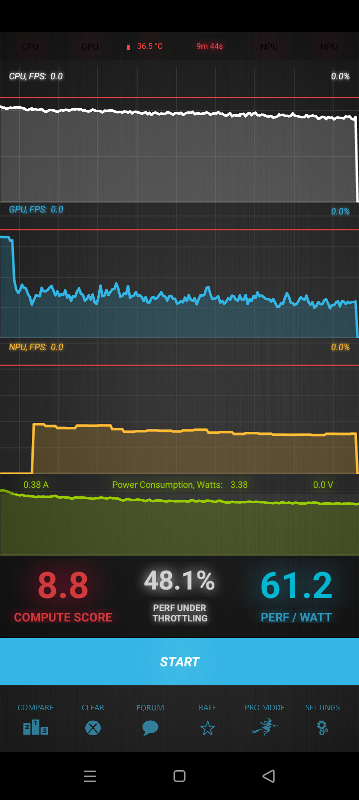 Тест на снижение производительности при нагреве мы проводим с помощью программы Burnout Benchmark, которая позволяет нагружать CPU, GPU и NPU: