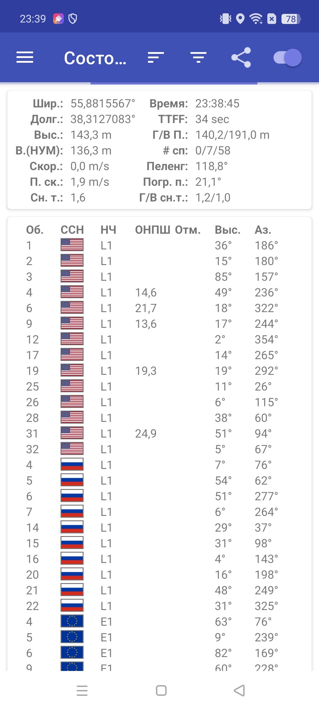 - GPS, Galileo, Глонасс, QZSS, BDS