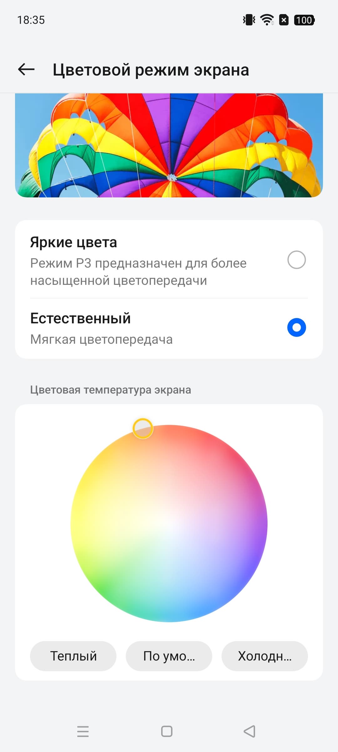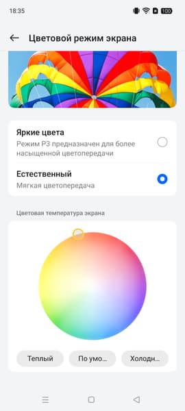 Фотография выше получена при активном профиле Естественный в настройках экрана, всего их два: