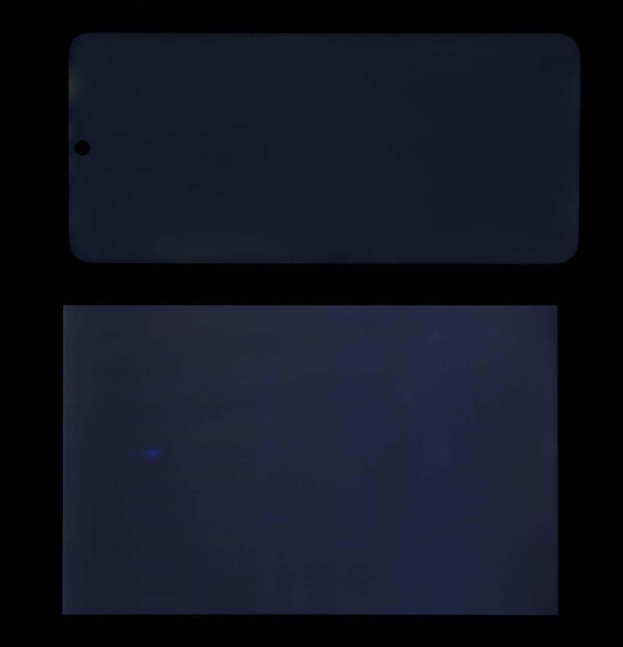 При перпендикулярном взгляде равномерность черного поля средняя — местами по краям есть засветы: