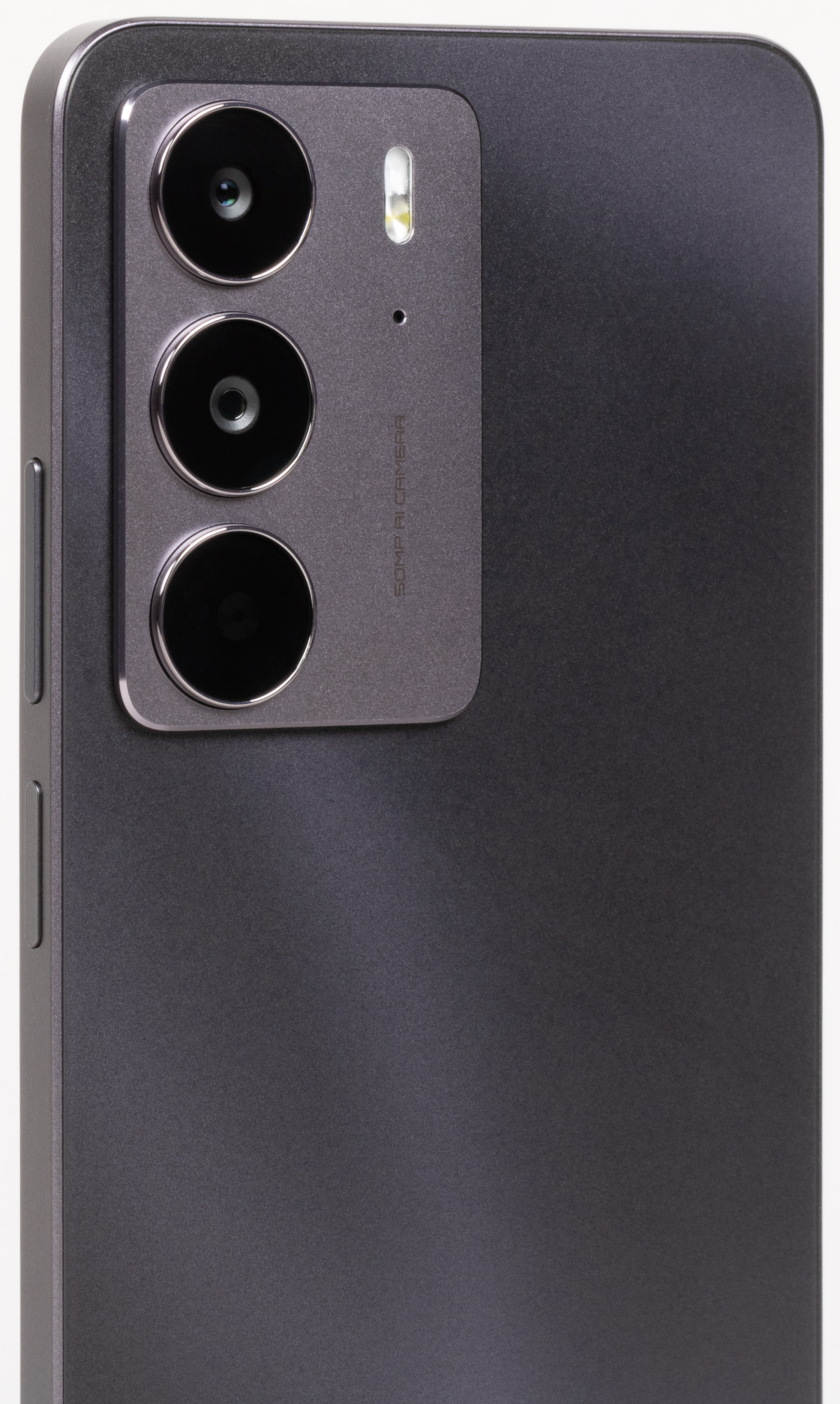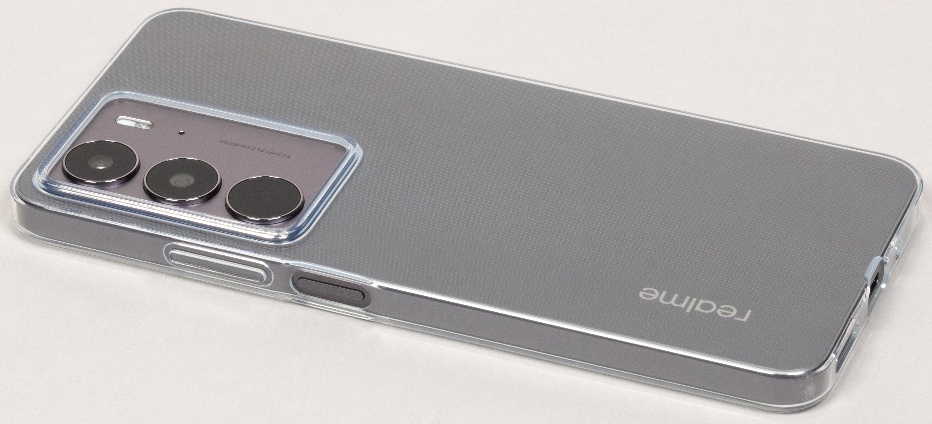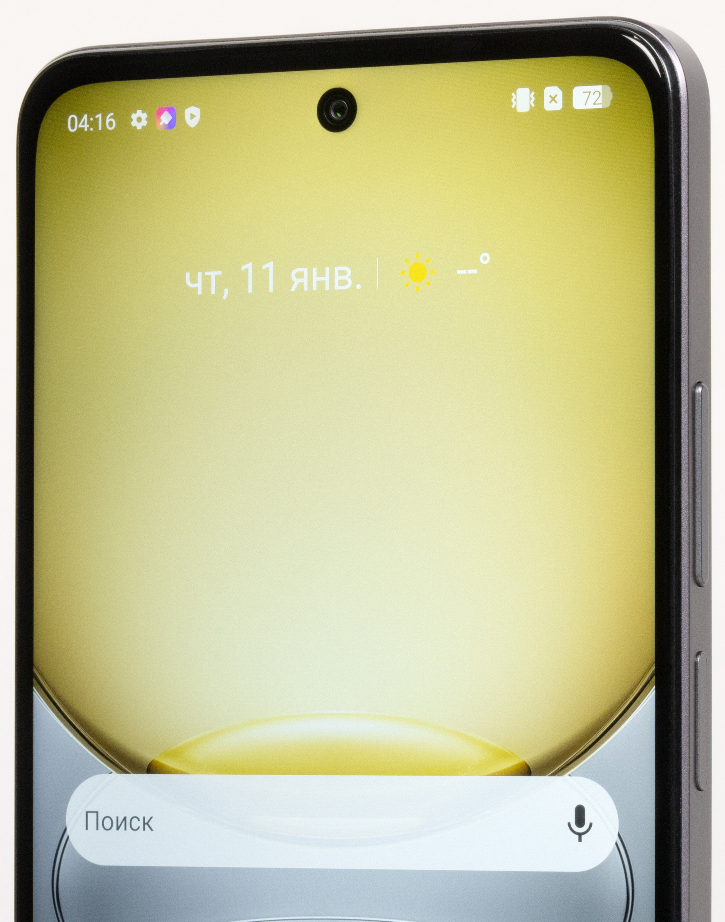 У Realme C75 современный дизайн с актуальными плоскими передней и задней панелями и широкими плоскими боковинами. Здесь нет ни закруглений к бокам, ни зауженных граней, ни загнутых стекол. За счет всего этого корпус не прокручивается в ладони, удерживается в руке надежно.