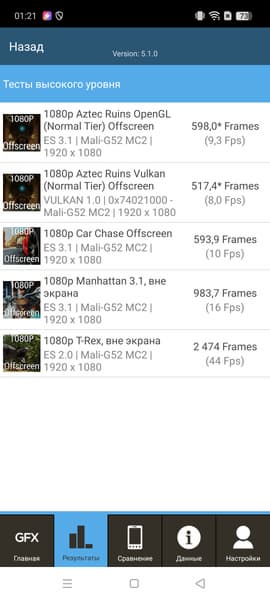 Все результаты, полученные нами при тестировании смартфона в самых свежих версиях популярных бенчмарков, мы для удобства свели в таблицы. В таблицу обычно добавляется несколько других аппаратов из различных сегментов, также протестированных на аналогичных последних версиях бенчмарков (это делается лишь для наглядной оценки полученных сухих цифр). К сожалению, в рамках одного сравнения нельзя представить результаты из разных версий бенчмарков, поэтому «за кадром» остаются многие достойные и актуальные модели — по причине того, что они в свое время проходили «полосу препятствий» на предыдущих версиях тестовых программ.