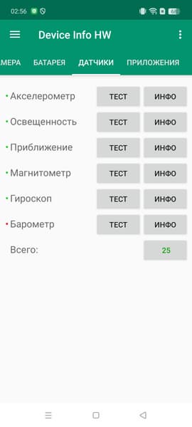 - Датчики приближения и освещения, магнитного поля, акселерометр, гироскоп