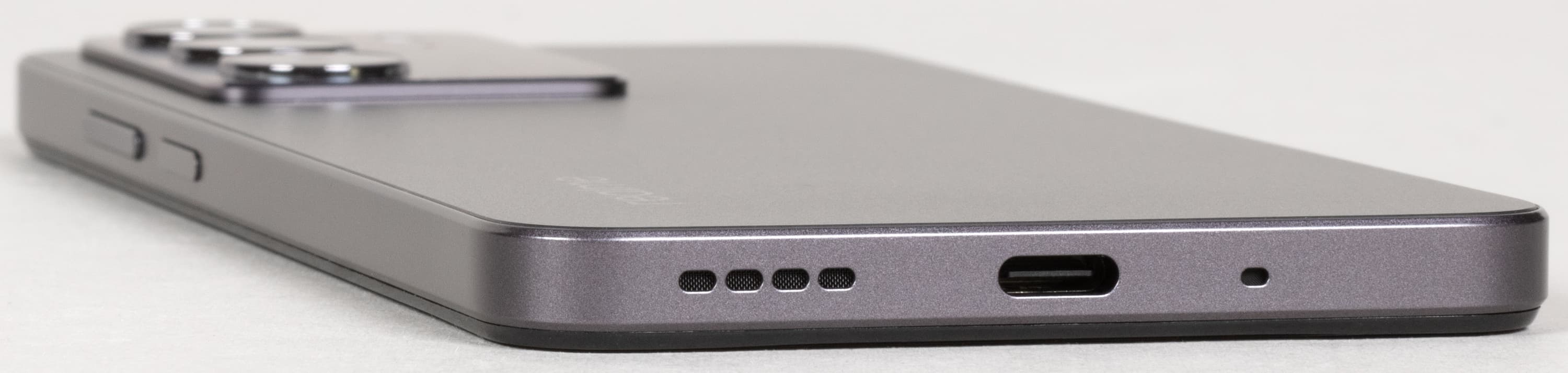 Верхний торец совершенно пуст. Все элементы, коих не так много, собрались на торце снизу: основной динамик, микрофон и разъем USB Type-C. Очень странно, что даже в модели бюджетного уровня не установлен 3,5-миллиметровый аудиовыход. Это плохой звоночек: дешевые смартфоны обычно покупают в целях экономии, а тут производитель предлагает еще и раскошелиться на беспроводные наушники, или, как минимум, сходить в магазин за переходником, который в комплект тоже не вложили.