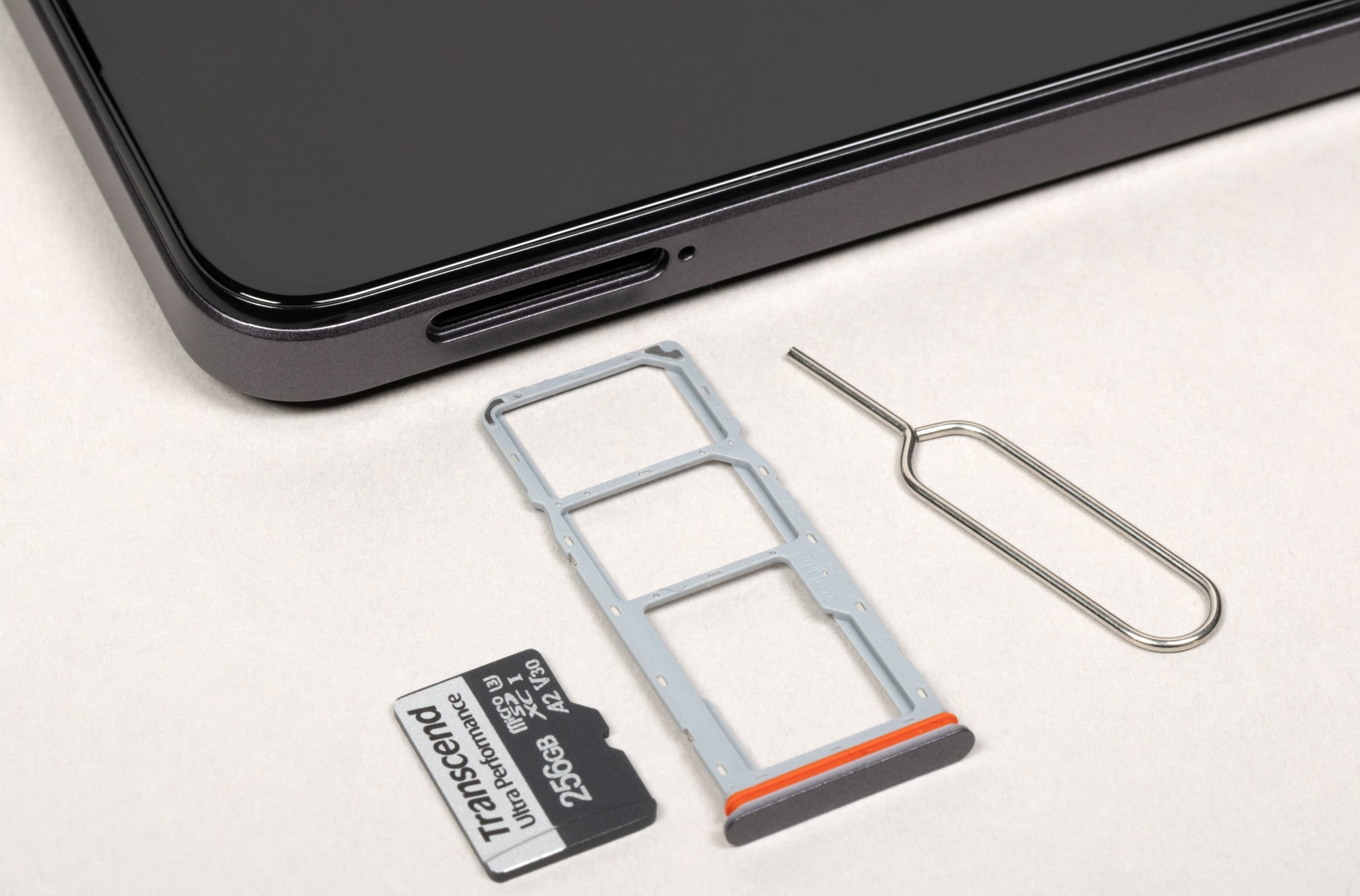 В тройной выдвижной лоток можно установить две карты Nano-SIM и одновременно карту памяти microSD.