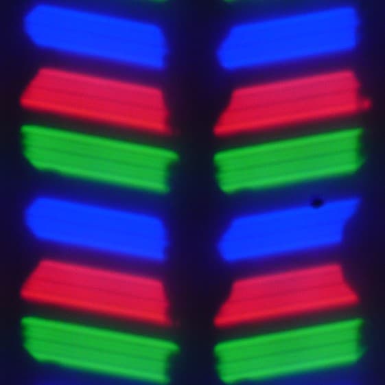 В данном смартфоне используется матрица типа IPS. Микрофотографии демонстрируют типичную для IPS структуру субпикселей: