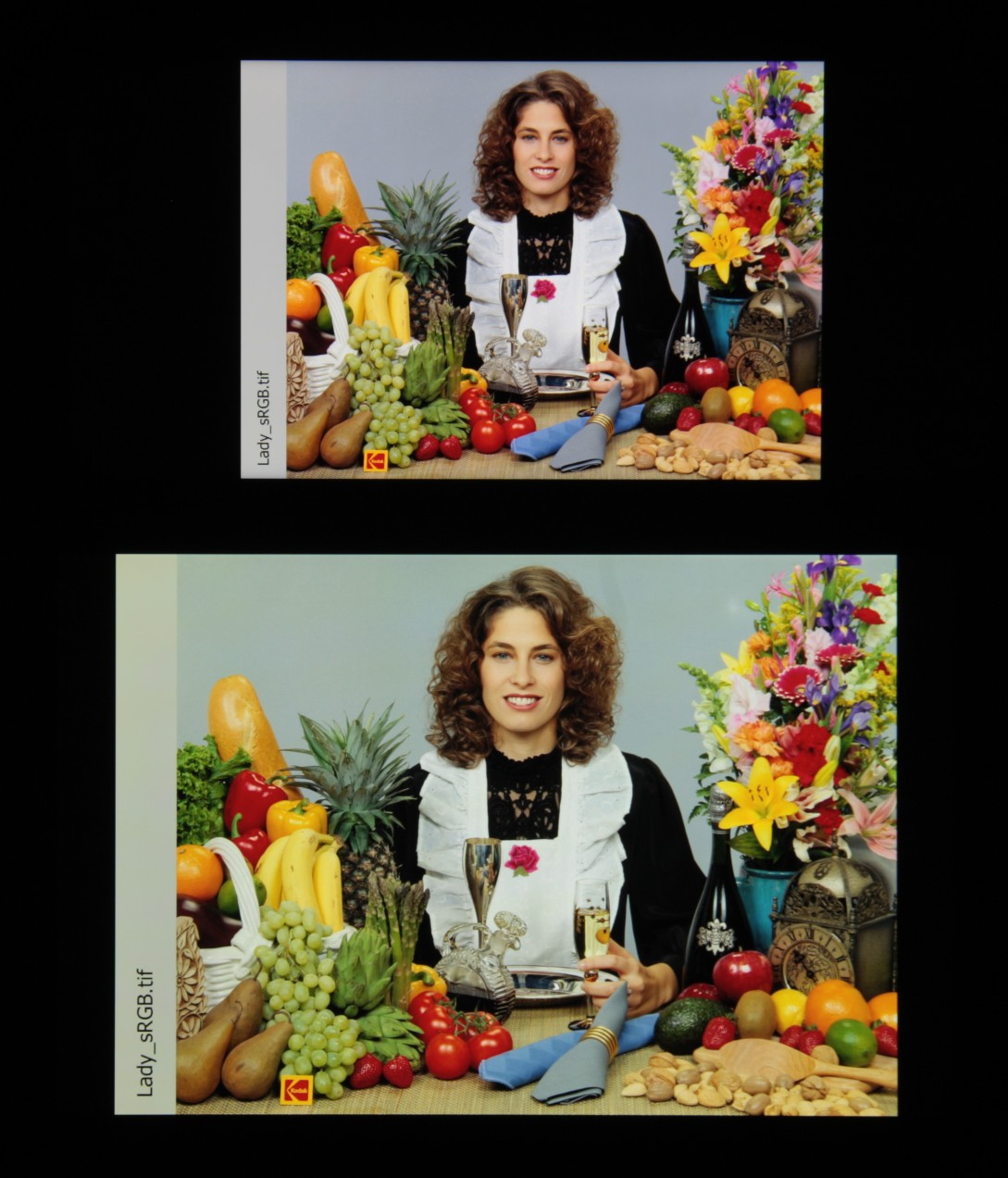 Отметим, что на экранах с широким цветовым охватом (без соответствующей коррекции) цвета́ обычных изображений, оптимизированных для устройств sRGB, выглядят неестественно насыщенными. Отсюда и рекомендация: в большинстве случаев смотреть кино, фотографии и все естественное лучше при выборе профиля Естественный.
