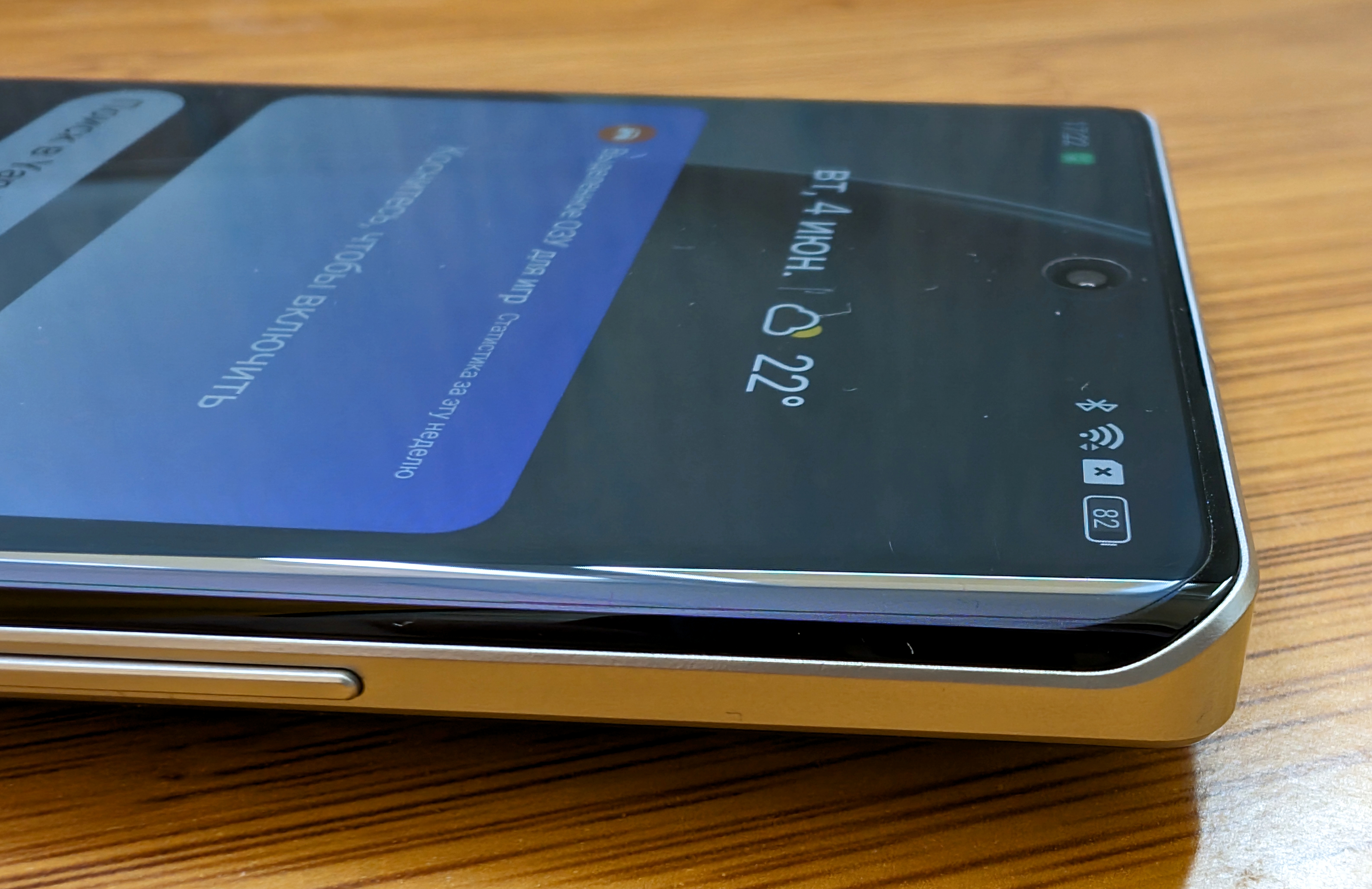 Что касается материалов, то здесь не всё однозначно. Например, переднее стекло — «правильное»: это Corning Gorilla Glass Victus 2, один из самых прочных материалов для дисплеев смартфонов на сегодняшний день. А вот что касается боковой рамки, то она «стыдная».