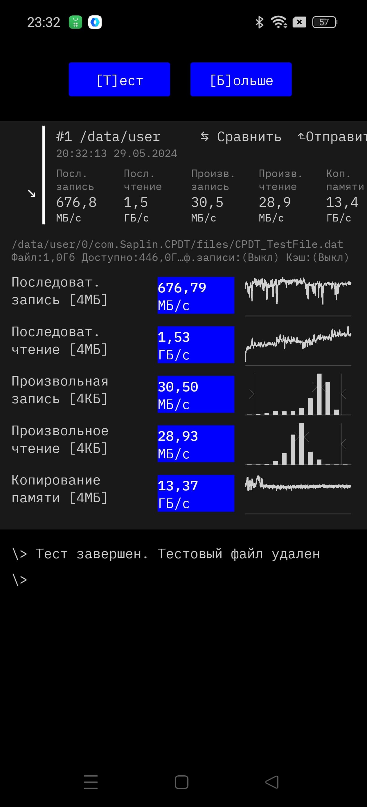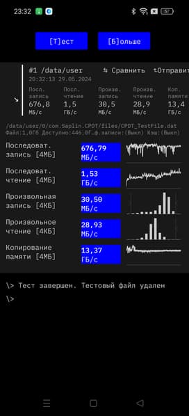 Результаты тестов на скорость работы с памятью: