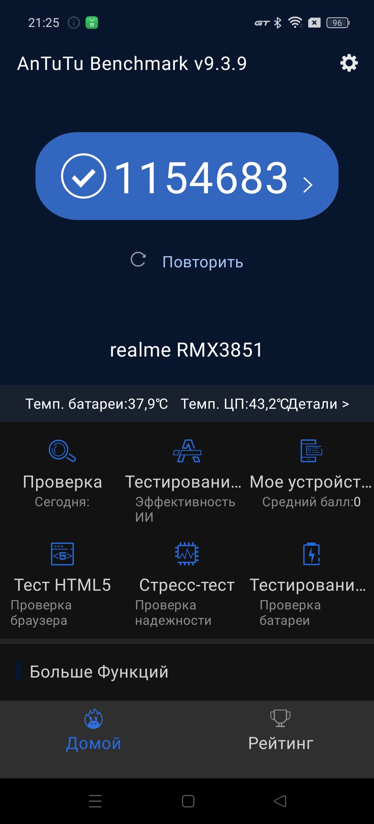 Тестирование в комплексных тестах AnTuTu и GeekBench: