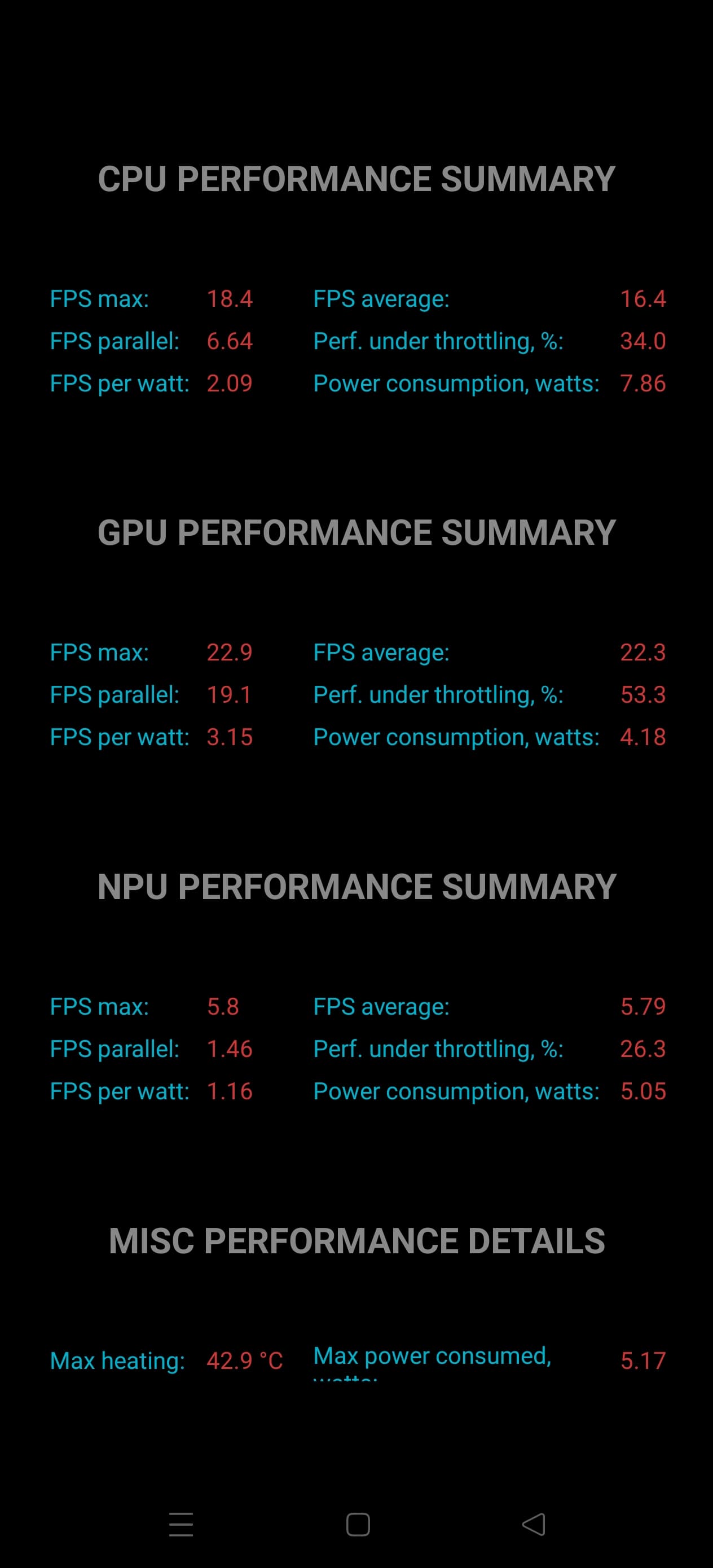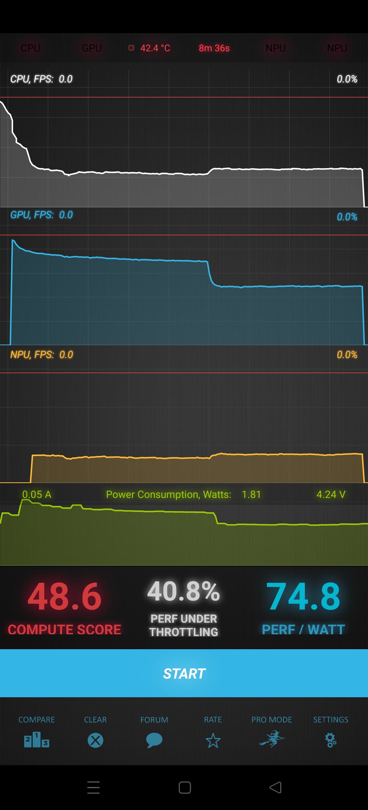 Тест на снижение производительности при нагреве мы проводим с помощью программы Burnout Benchmark, которая позволяет нагружать CPU, GPU и NPU: