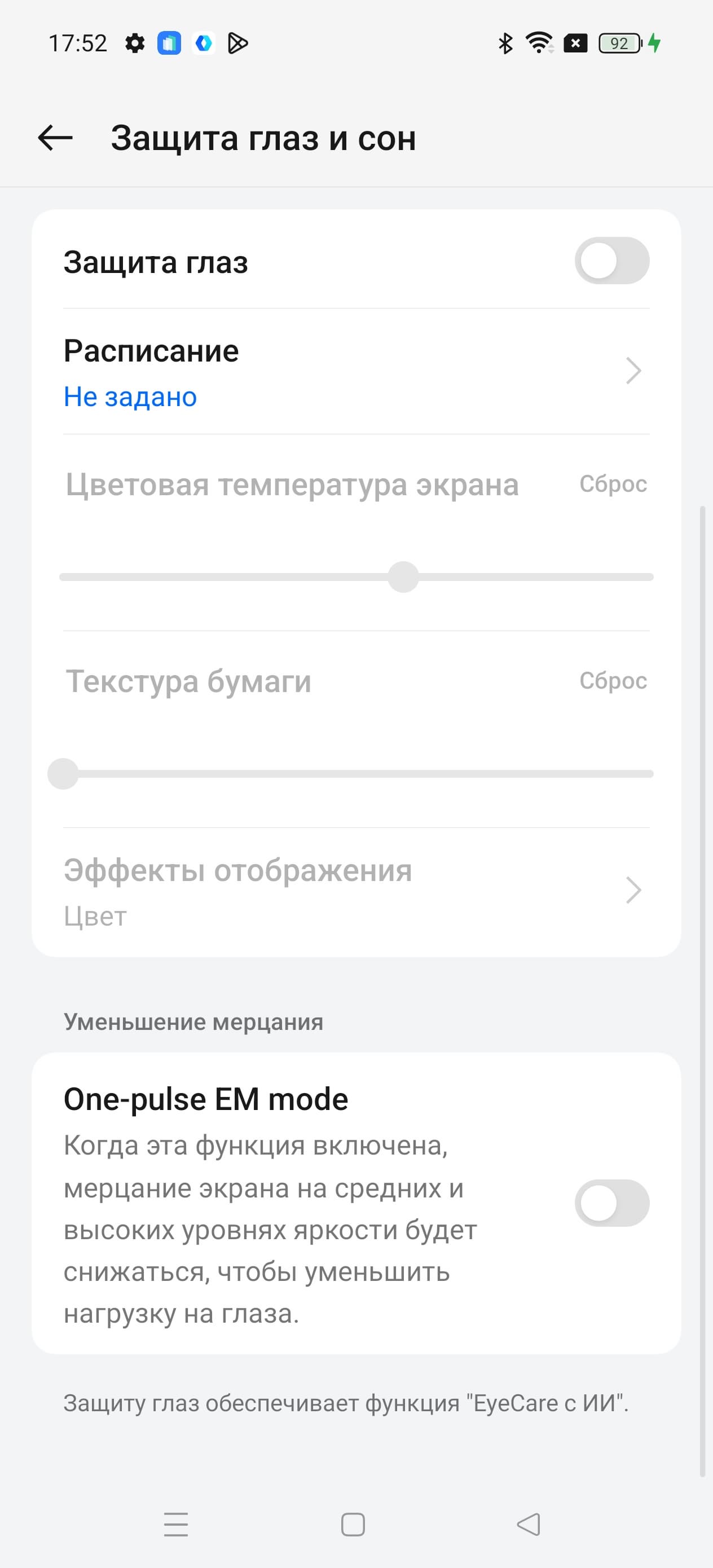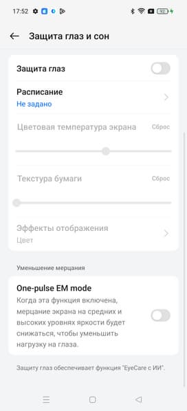 Также есть странная функция One-pulse EM mode, которая должна снижать мерцание на высокой и средней яркости (которого и так не видно).