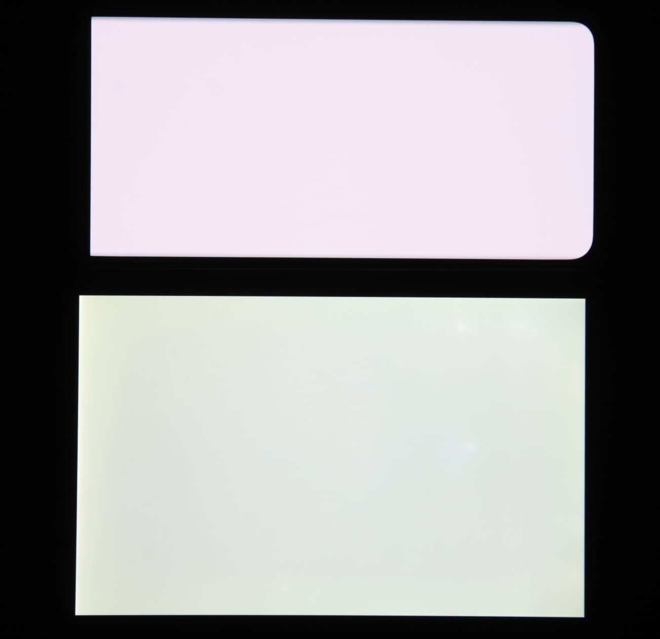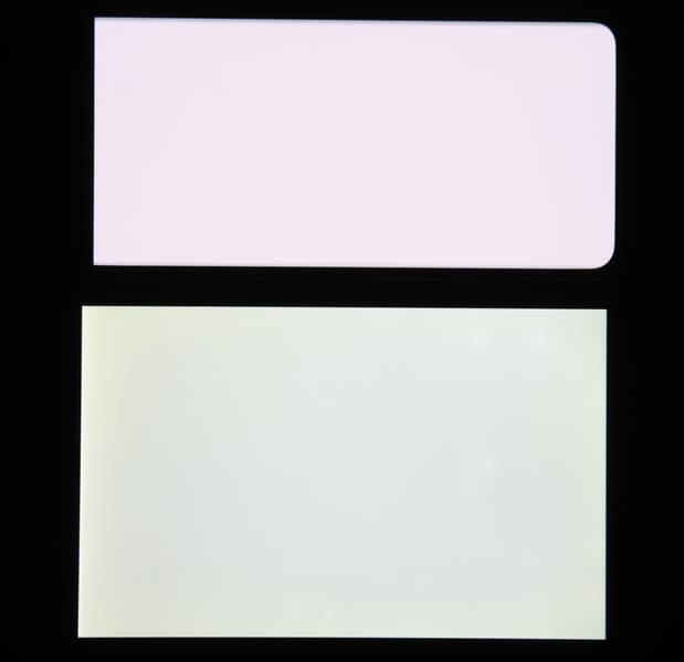 Отметим хорошую равномерность яркости и цветового тона белого поля (за исключением едва видимого затемнения и изменения оттенка к загнутым краям).