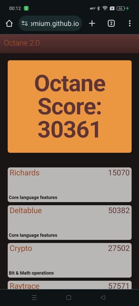 | Google Octane 2 (больше — лучше) | 30361 | 70812 | 30529 | 52617 | 5180 |