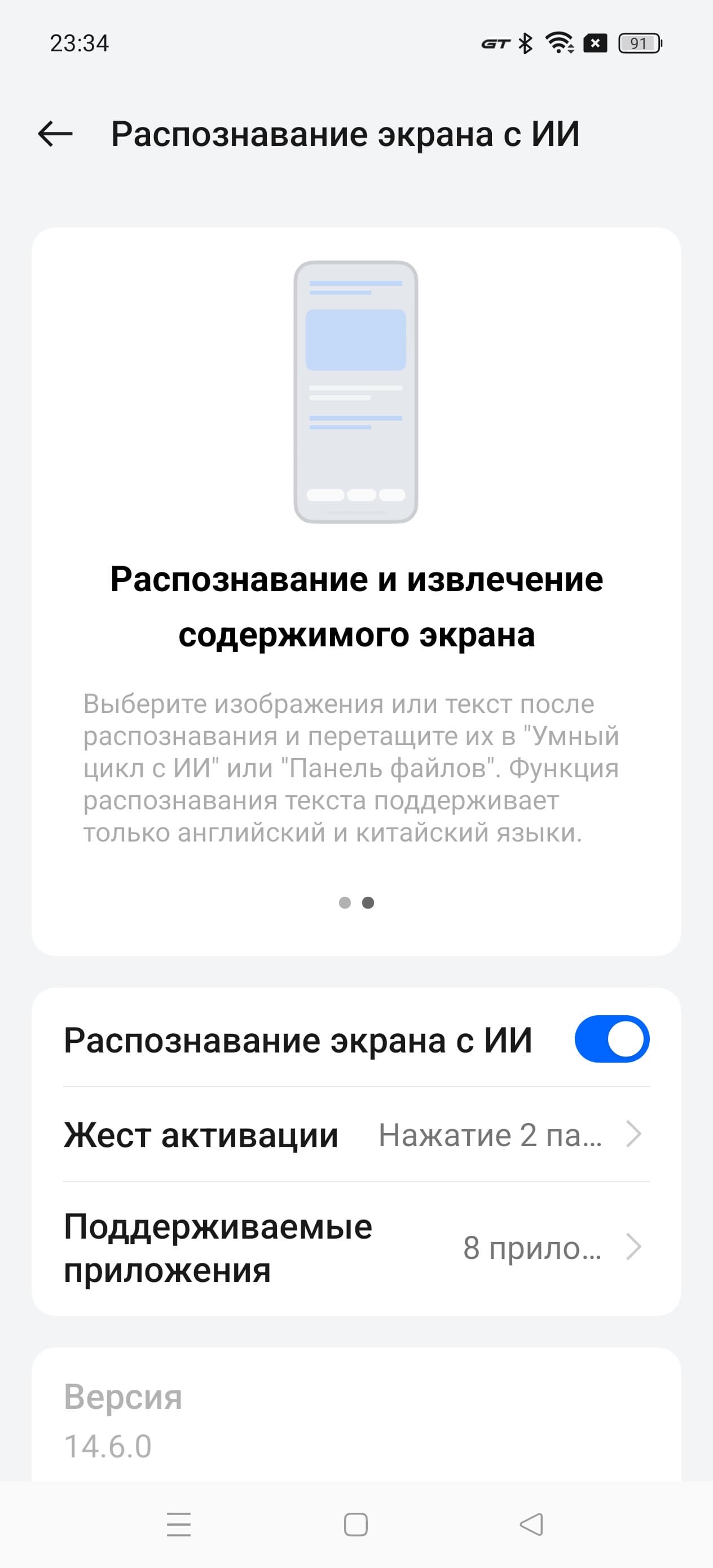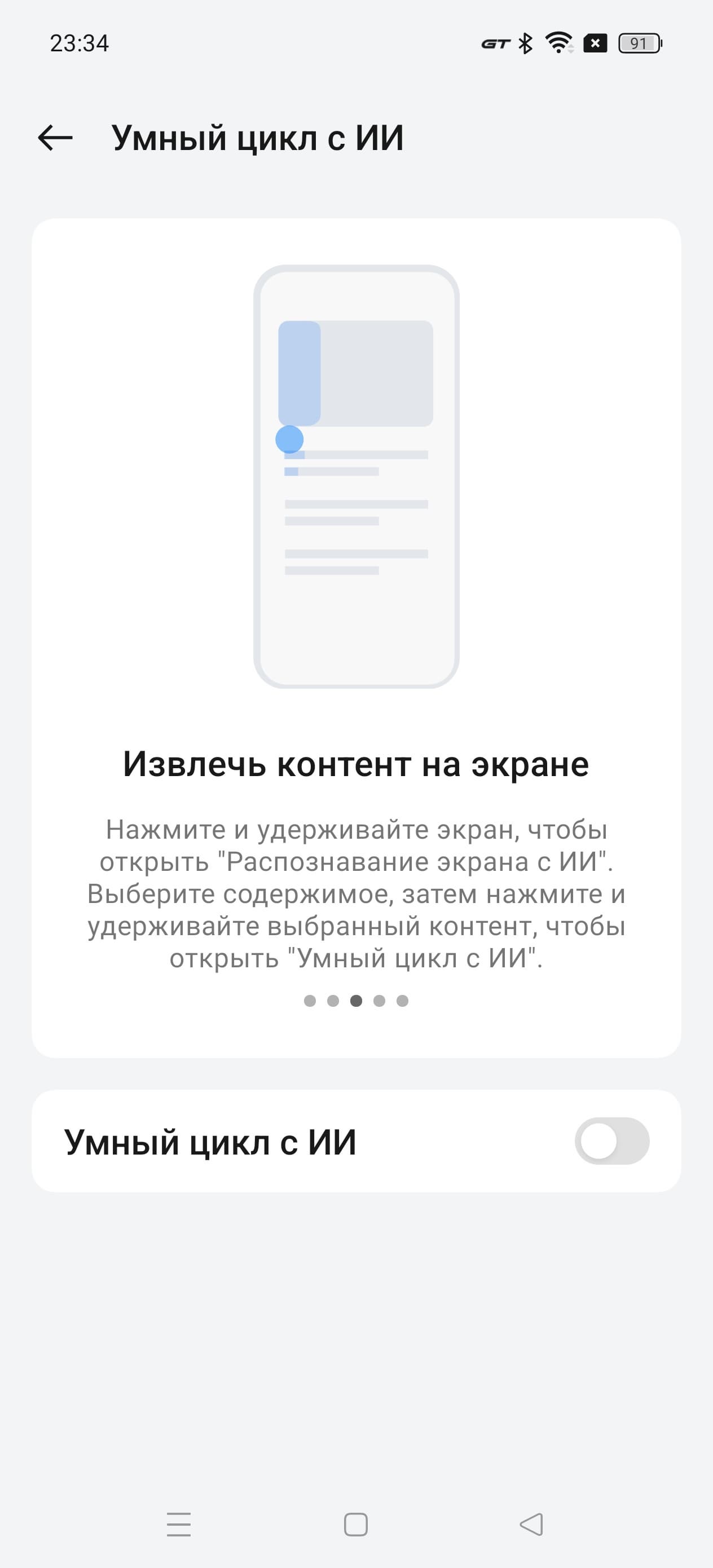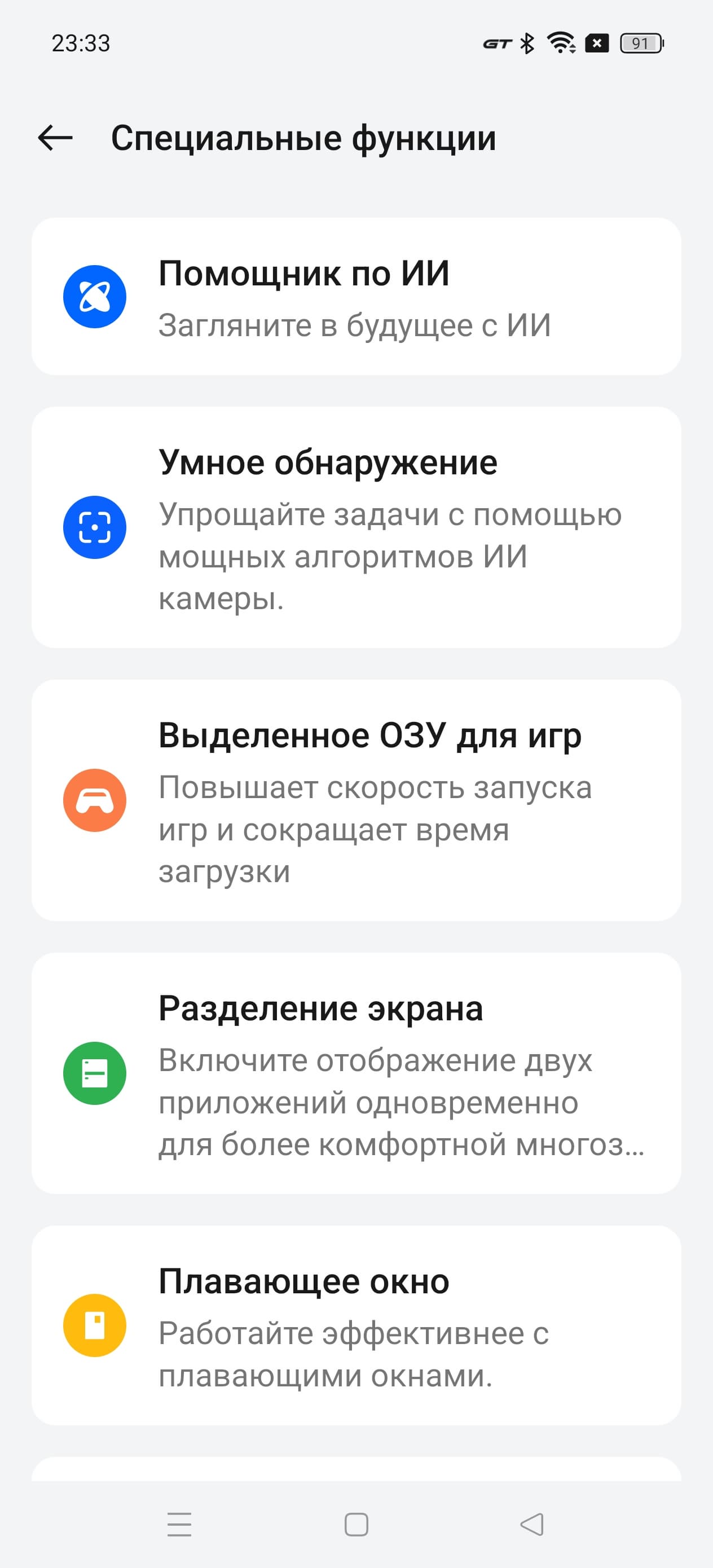 В новом сезоне разработчики сделали упор на поддержку ИИ, расширив его внедрение в некоторые приложения и дав несколько новых инструментов в руки пользователю. Например, при редактировании фотографий в галерее можно, выделяя, вырезать и удалять нежелательные объекты на картинке. Контекстный поиск в Google осуществляется путем выделения объекта на любом экране. Также ИИ может распознать текст на фото, перевести его в текстовый формат и использовать в дальнейшем. Правда, пока только английский и китайский. Также ИИ используется для оптимизации изображения на экране, защиты зрения, продлевает срок службы смартфона и аккумулятора, оптимизирует производительность в зависимости от задачи. В итоге серия Realme GT 6 получила следующий основной ряд AI-функций: