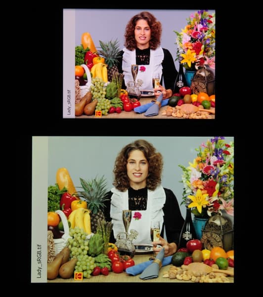Отметим, что на экранах с широким цветовым охватом без соответствующей коррекции цвета обычных изображений, оптимизированных для устройств sRGB, выглядят неестественно насыщенными. Отсюда и рекомендация: в большинстве случаев смотреть кино, фотографии и все естественное лучше при выборе профиля Естественный. Профиль Яркие цвета (или Кинематографические) уместен при просмотре материала с охватом DCI-P3, принятым в цифровом кинематографе, но в быту встречающимся редко.
