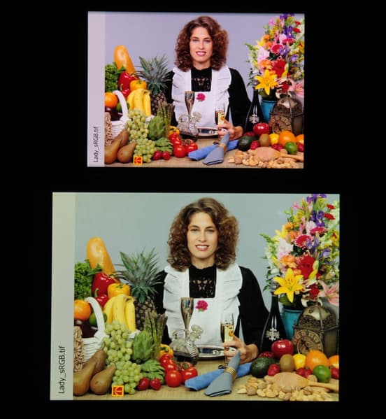 При сильном изменении условий освещенности подстройка цветового баланса выражена слабо, поэтому, с нашей точки зрения, эта функция не работает как нужно. Отметим, что сейчас сложившимся стандартом является калибровка устройств отображения к точке белого в 6500 К, но в принципе, коррекция под цветовую температуру внешнего света может принести пользу, если хочется добиться лучшего соответствия изображения на экране с тем, что видно на бумаге (или на любом носителе, на котором цвета формируются за счет отражения падающего света) в текущих условиях.