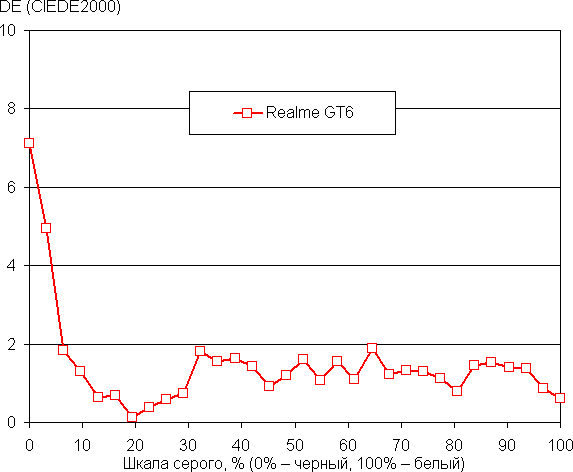 (Самые темные области шкалы серого в большинстве случаев можно не учитывать, так как там баланс цветов не имеет большого значения, да и погрешность измерений цветовых характеристик на низкой яркости высокая.)