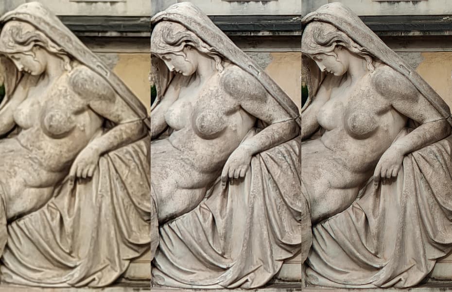 Вторая камера, с сенсором Samsung JN5 (50 Мп), реализует оптический зум 2×. Она также по умолчанию снимает в режиме с объединением пикселей, в 12,5 Мп, и в ее случае проблемы с контрастом полноразмерных снимков еще более заметны. Впрочем, в режиме съемки 12,5 Мп никаких проблем с этим нет, у фотографий отличные резкость и четкость, высокая детализация, так что оптический зум 2× можно только похвалить, хотя цвета иногда все-таки «гуляют».