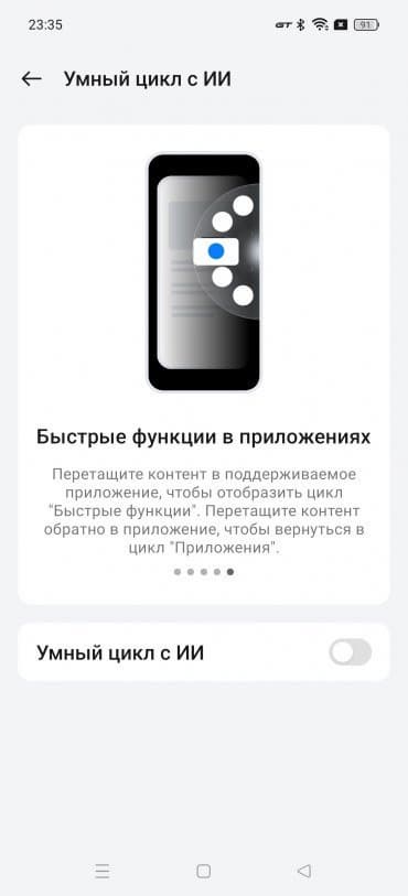 - Функция «AI Smart Loop» автоматически распознает контент на экране и позволяет всего в одно действие перенести текст, изображение или файл в другое приложение. Достаточно потянуть объект в сторону — и смартфон предложит варианты для отправки в виде барабанной крутилки с выбором опций.