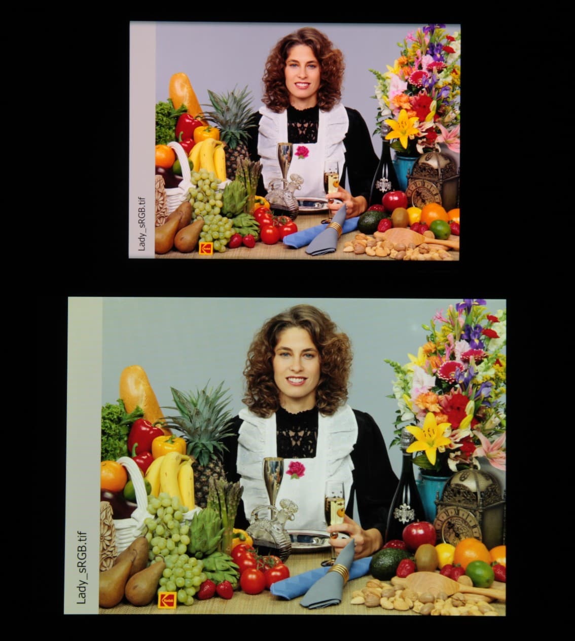 Отметим, что на экранах с широким цветовым охватом без соответствующей коррекции цвета обычных изображений, оптимизированных для устройств sRGB, выглядят неестественно насыщенными. Отсюда и рекомендация: в большинстве случаев смотреть кино, фотографии и все естественное лучше при выборе профиля Естественный. Профиль Яркие цвета (или Кинематографические) уместен при просмотре материала с охватом DCI-P3, принятым в цифровом кинематографе, но в быту встречающимся редко.
