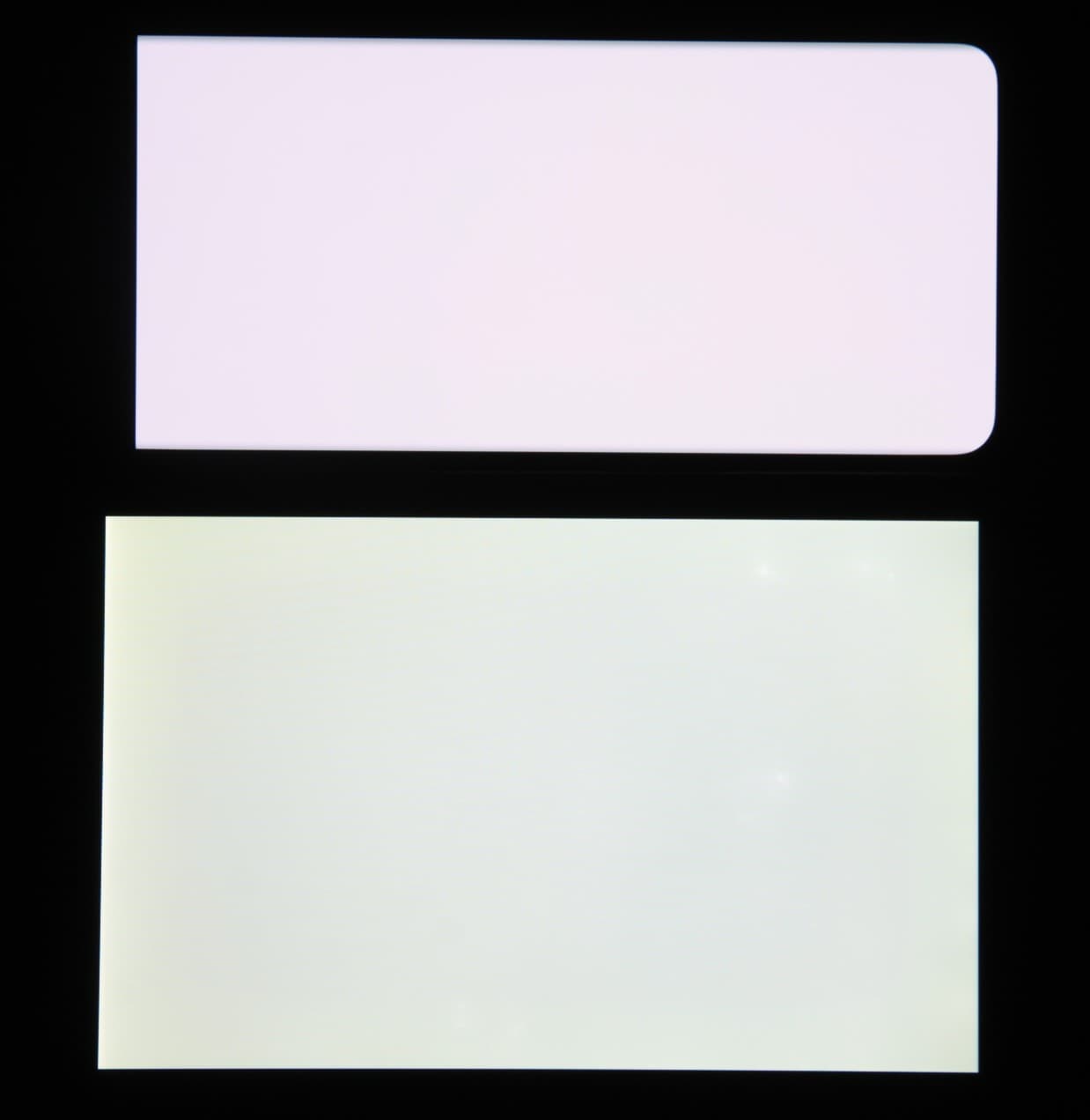 Отметим хорошую равномерность яркости и цветового тона белого поля (за исключением едва видимого затемнения и изменения оттенка к загнутым краям).