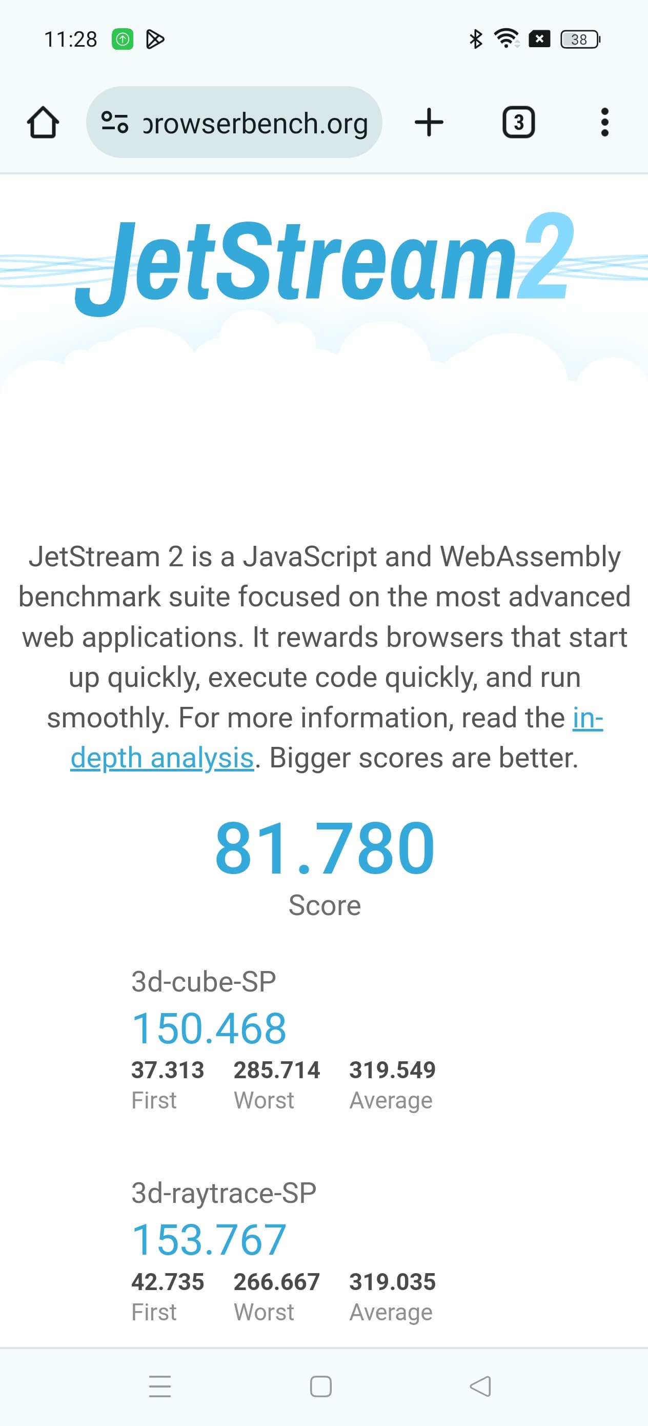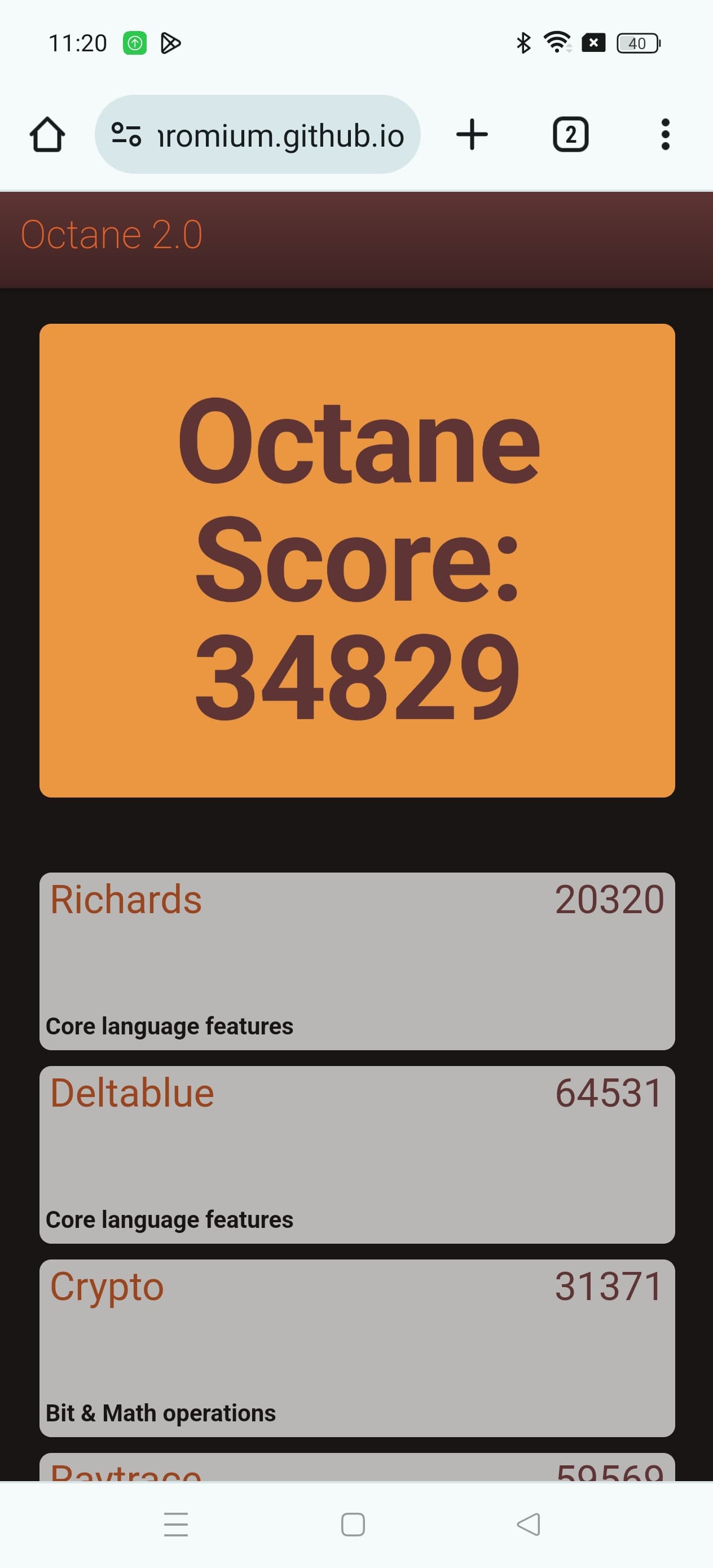| Google Octane 2 (больше — лучше) | 34829 | 7118 | 33442 | 24923 | 39276 |
