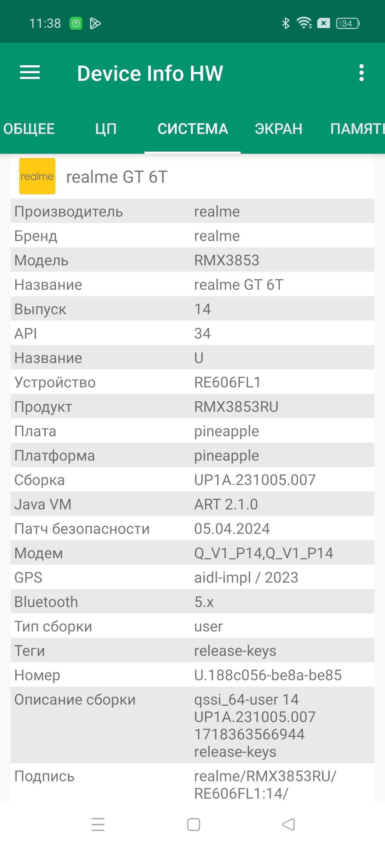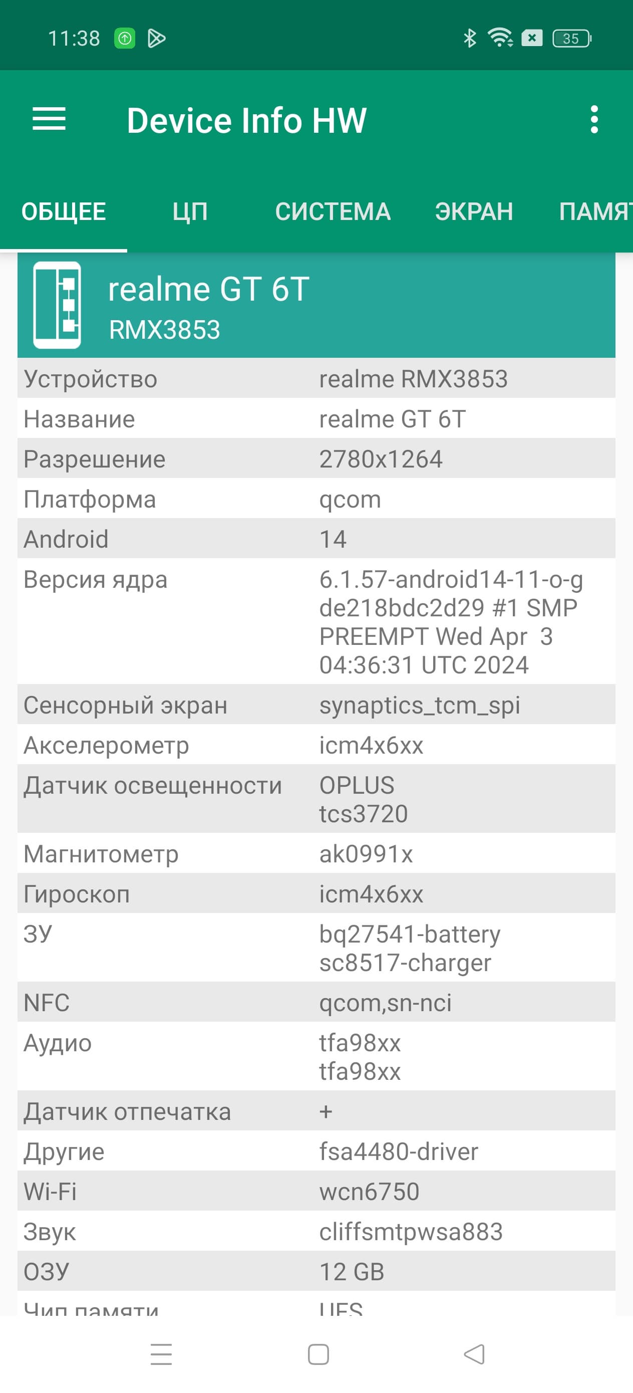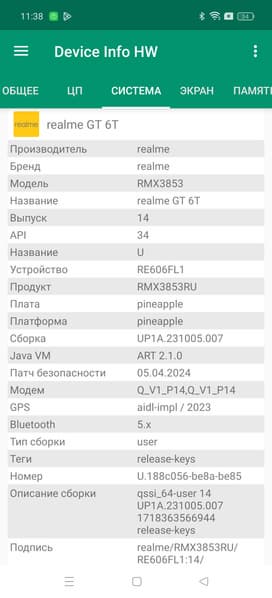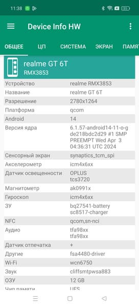 Основные характеристики Realme GT 6T (модель RMX3853)
