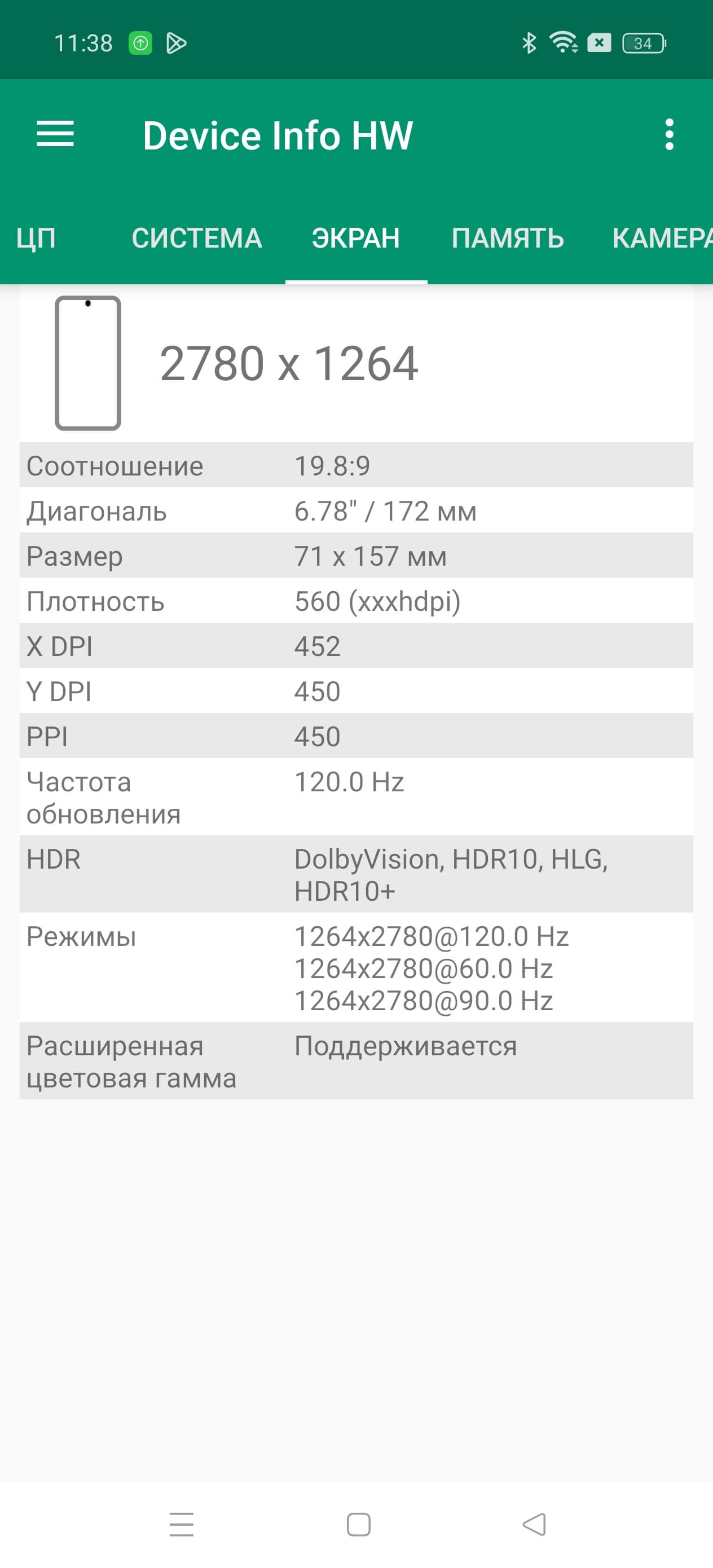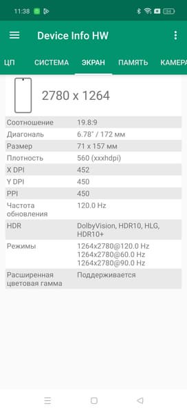 - Сенсорный дисплей AMOLED, 6,78″, 1264×2780, 20:9, 450 ppi, 120 Гц