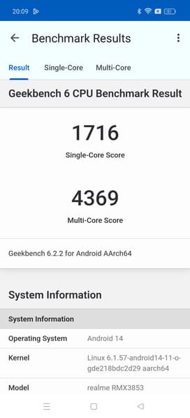 | GeekBench 6 (больше — лучше) | 1716/4369 | 1091/2571 | 939/2871 | 996/2453 | 1126/2643 |