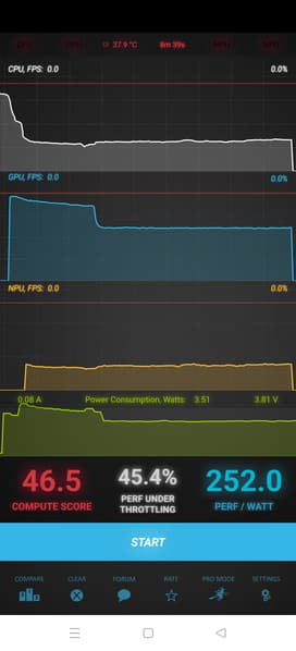 Тест на снижение производительности при нагреве мы проводим с помощью программы Burnout Benchmark, которая позволяет нагружать CPU, GPU и NPU: